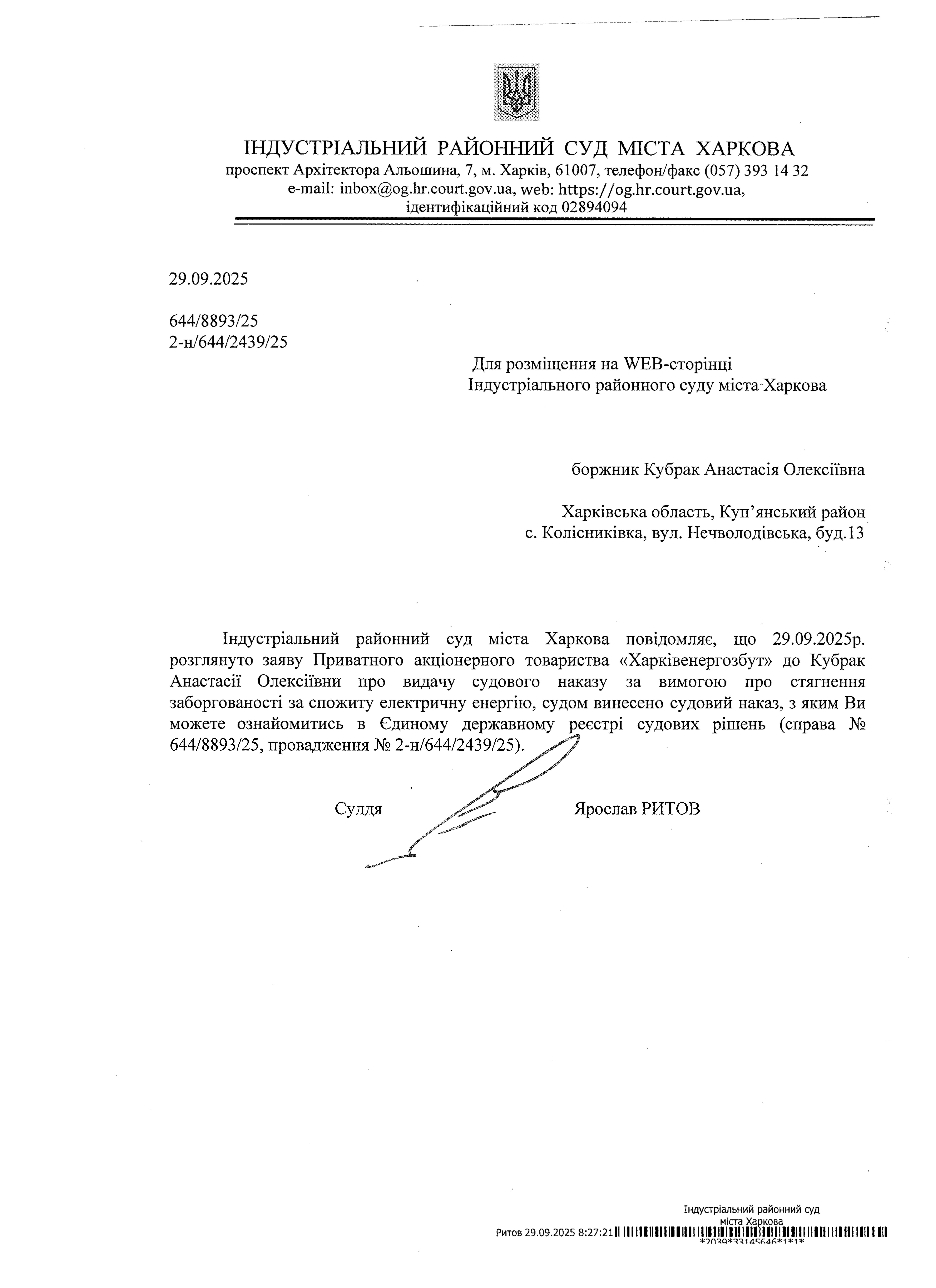 Індустріальний районний суд міста Харкова