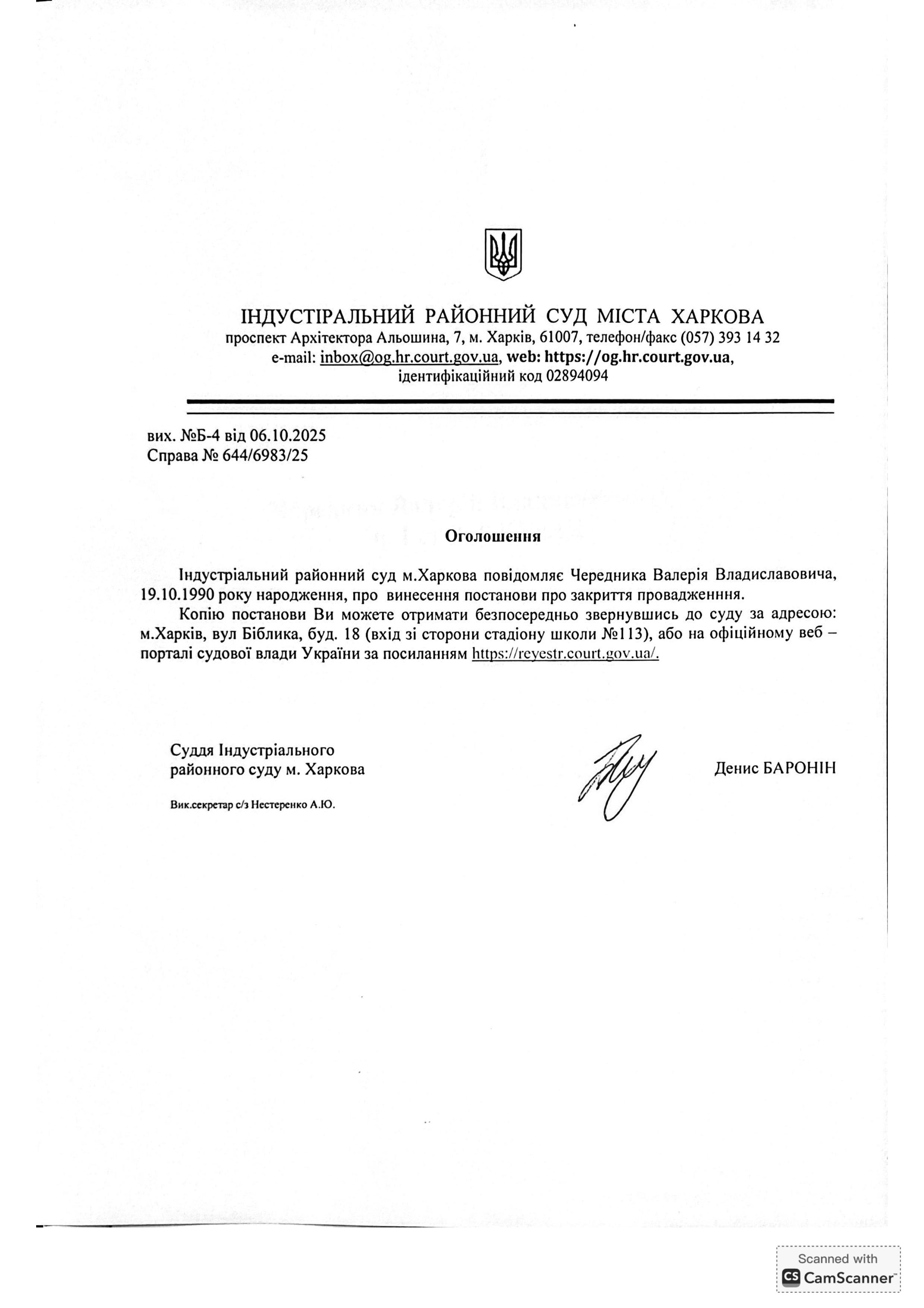 Оголошення про виклик особи в суд та повідомлення про судове рішення