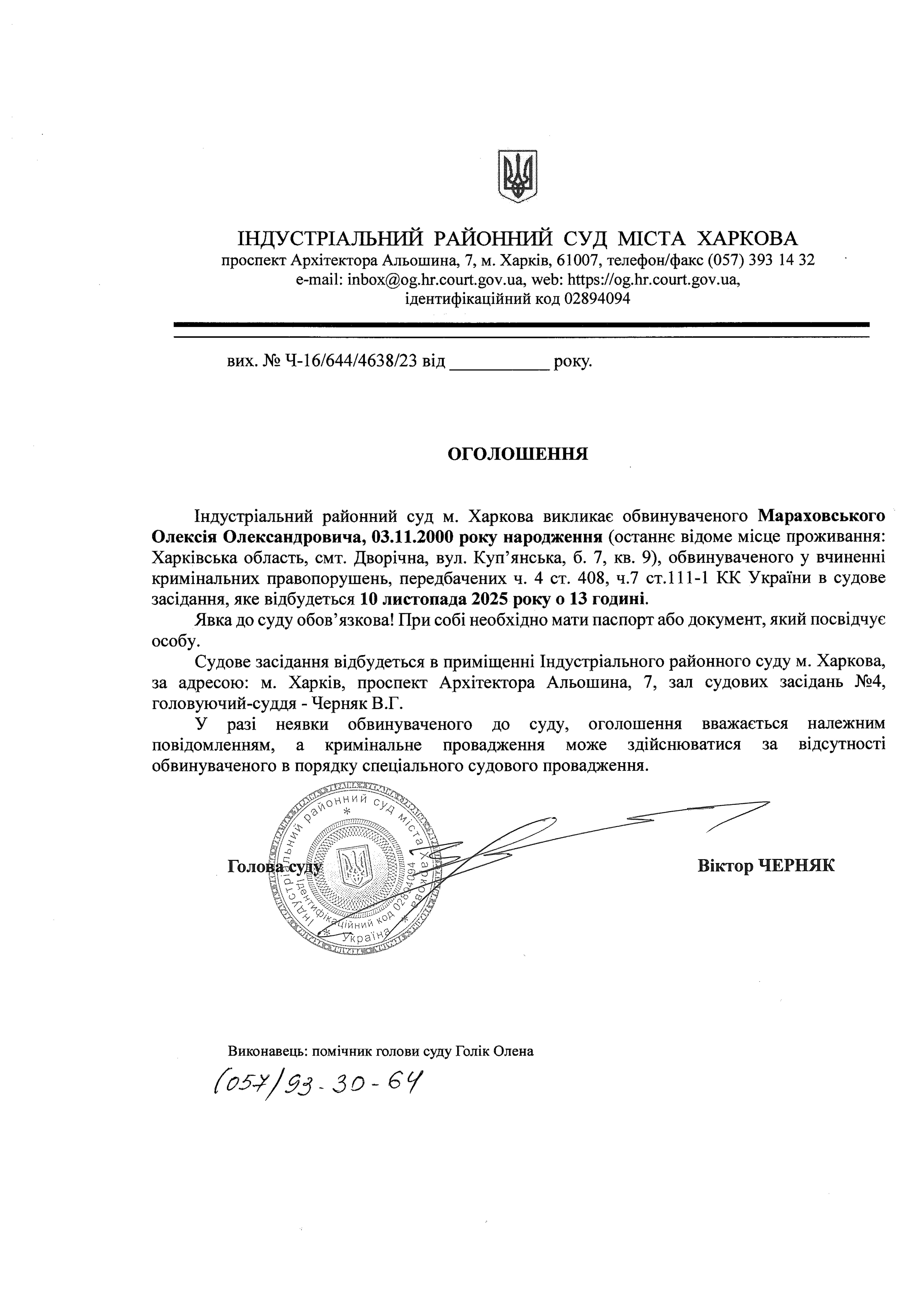 Увага, суд перейменовано з Орджонікідзевський районний суд м. Харкова