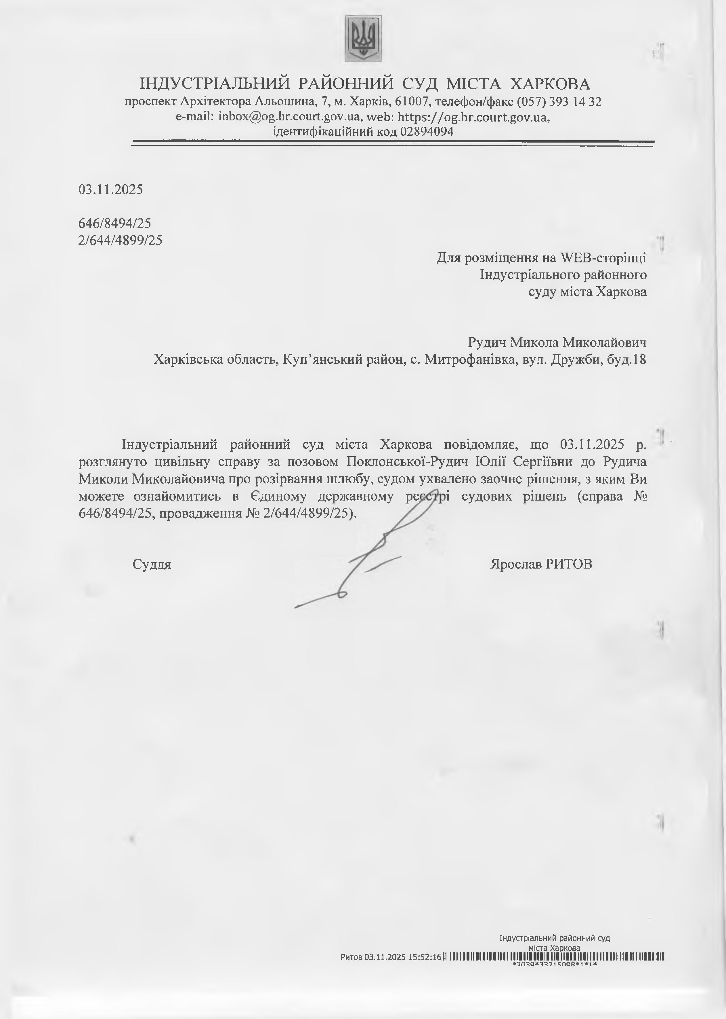 Увага, суд перейменовано з Орджонікідзевський районний суд м. Харкова