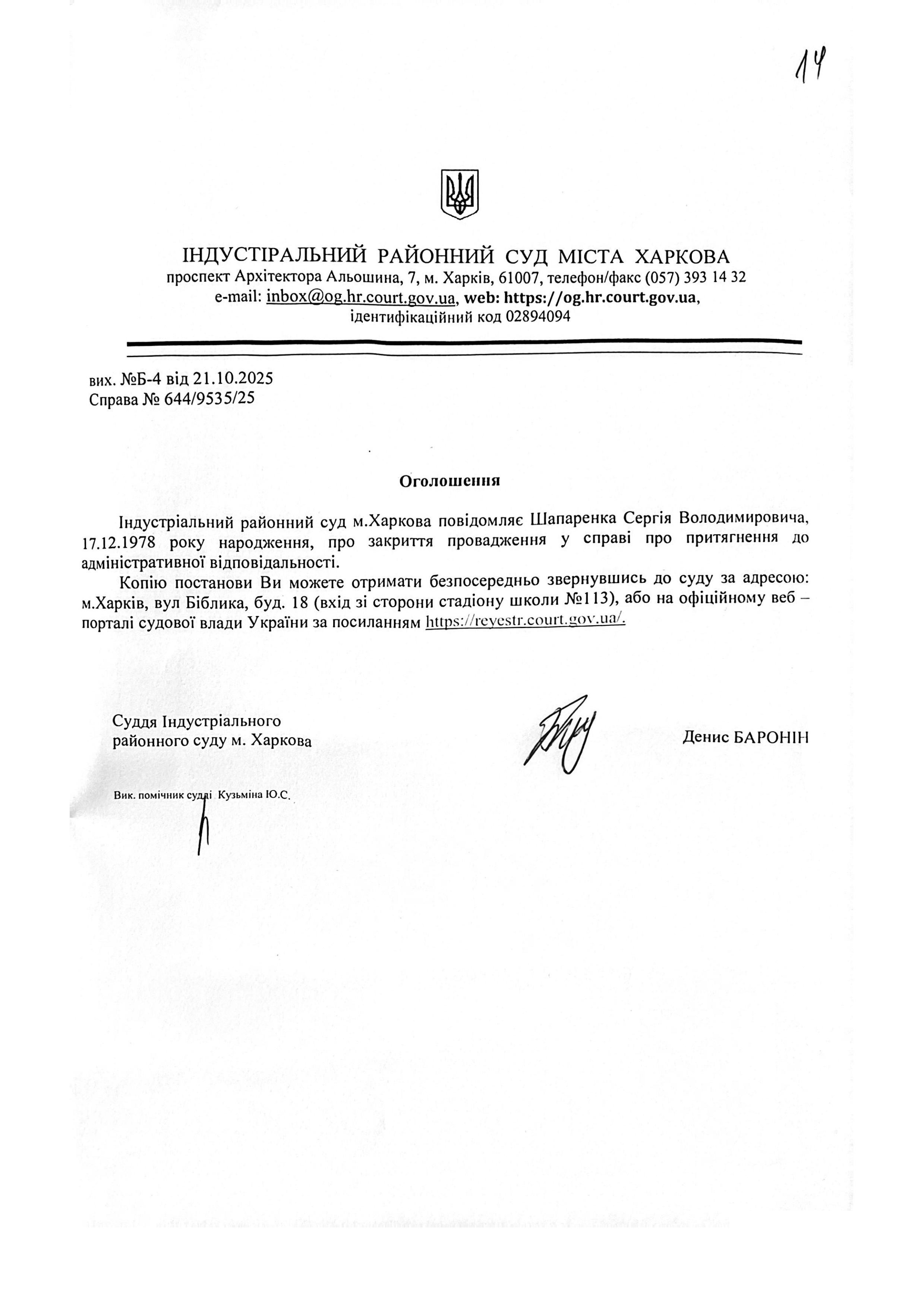 Оголошення про виклик особи в суд та повідомлення про судове рішення