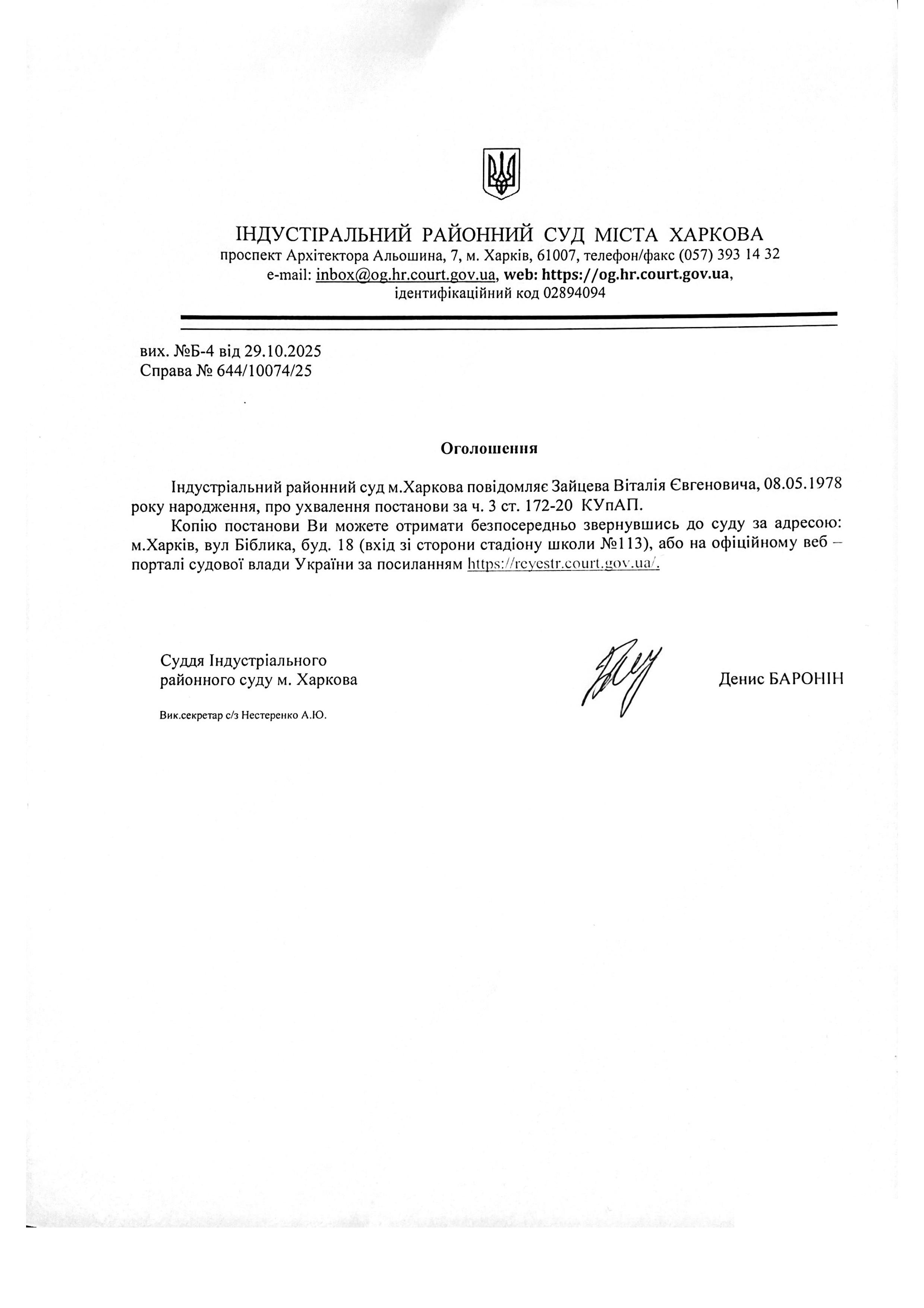Увага, суд перейменовано з Орджонікідзевський районний суд м. Харкова