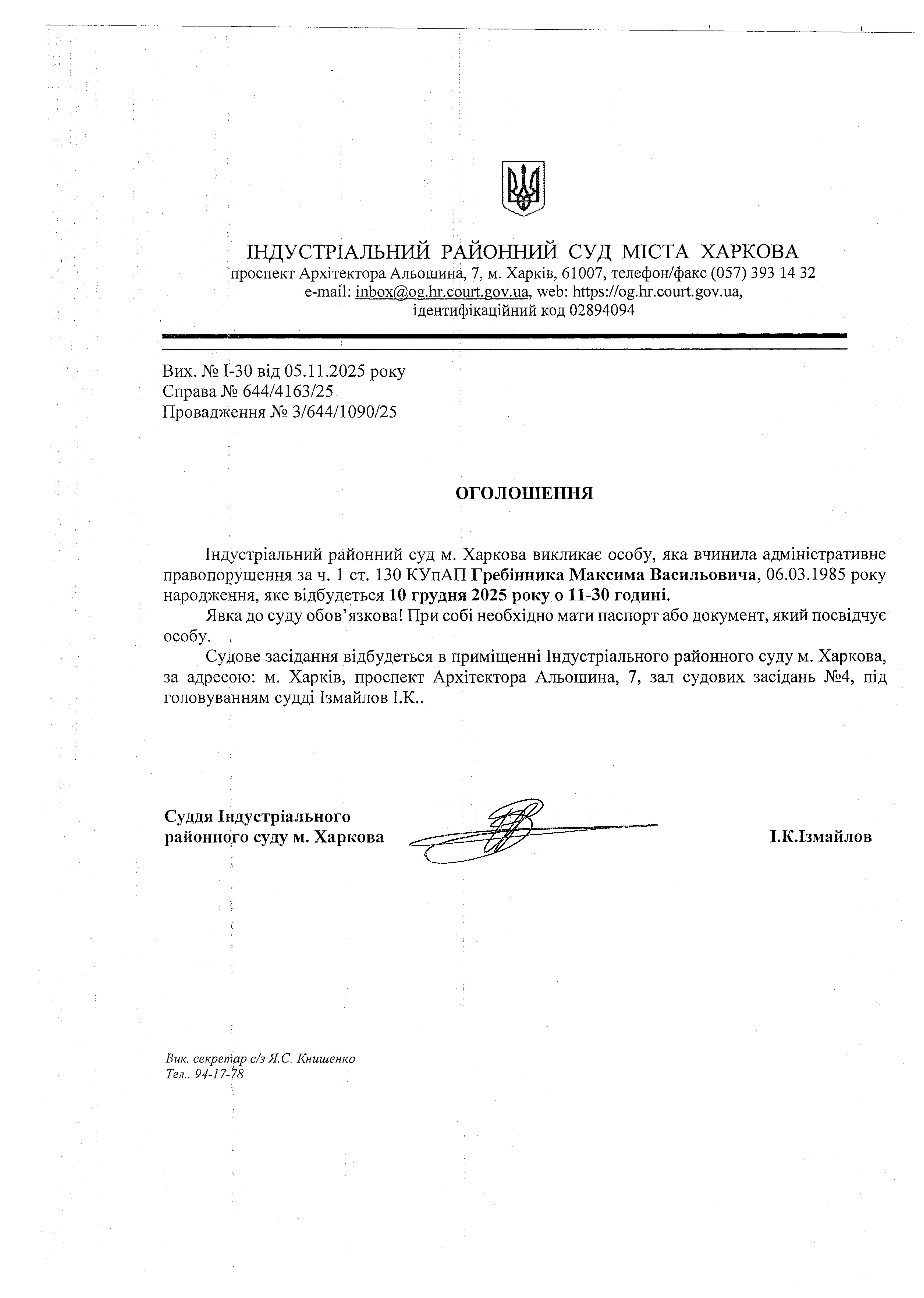 Увага, суд перейменовано з Орджонікідзевський районний суд м. Харкова