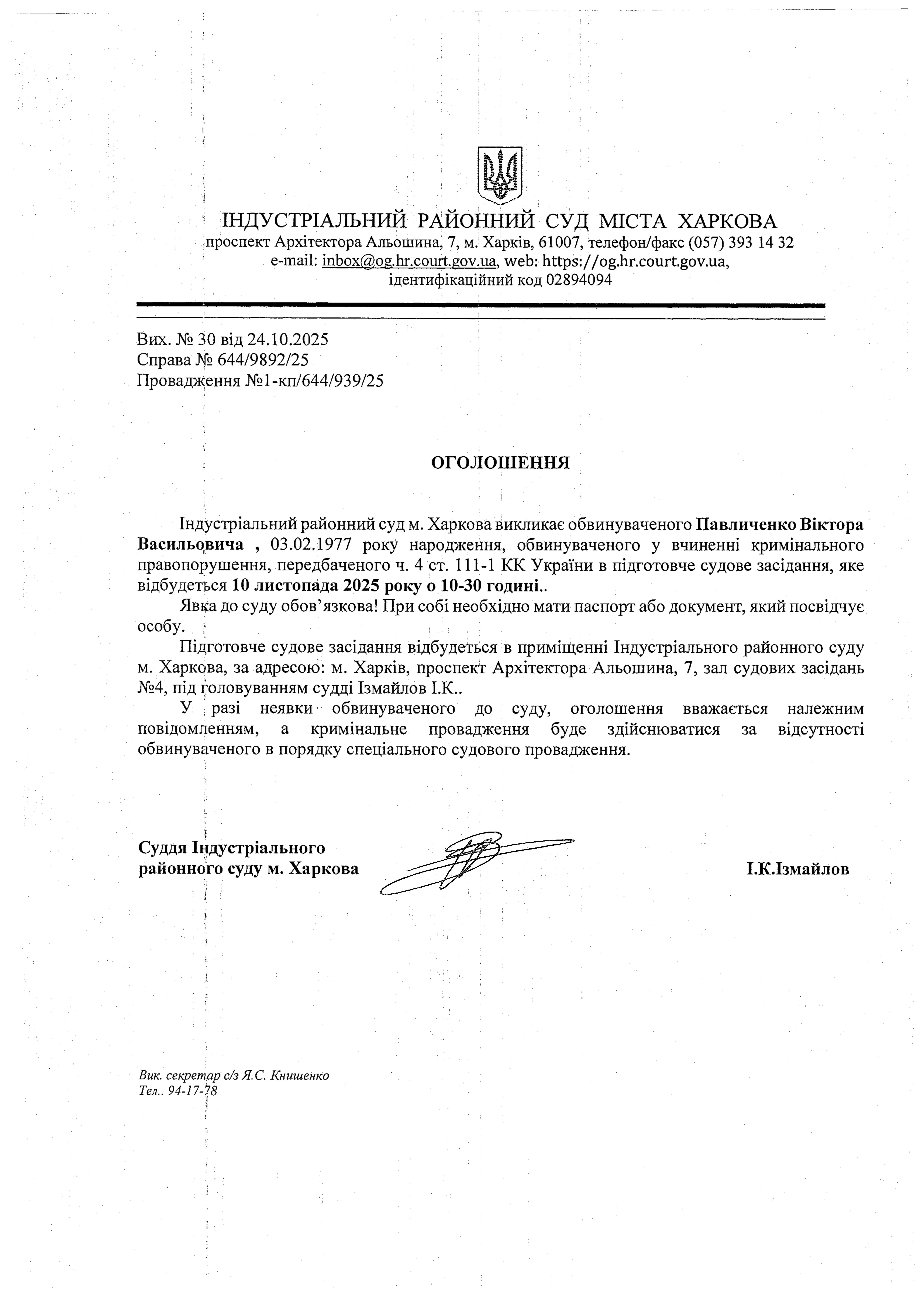 Увага, суд перейменовано з Орджонікідзевський районний суд м. Харкова