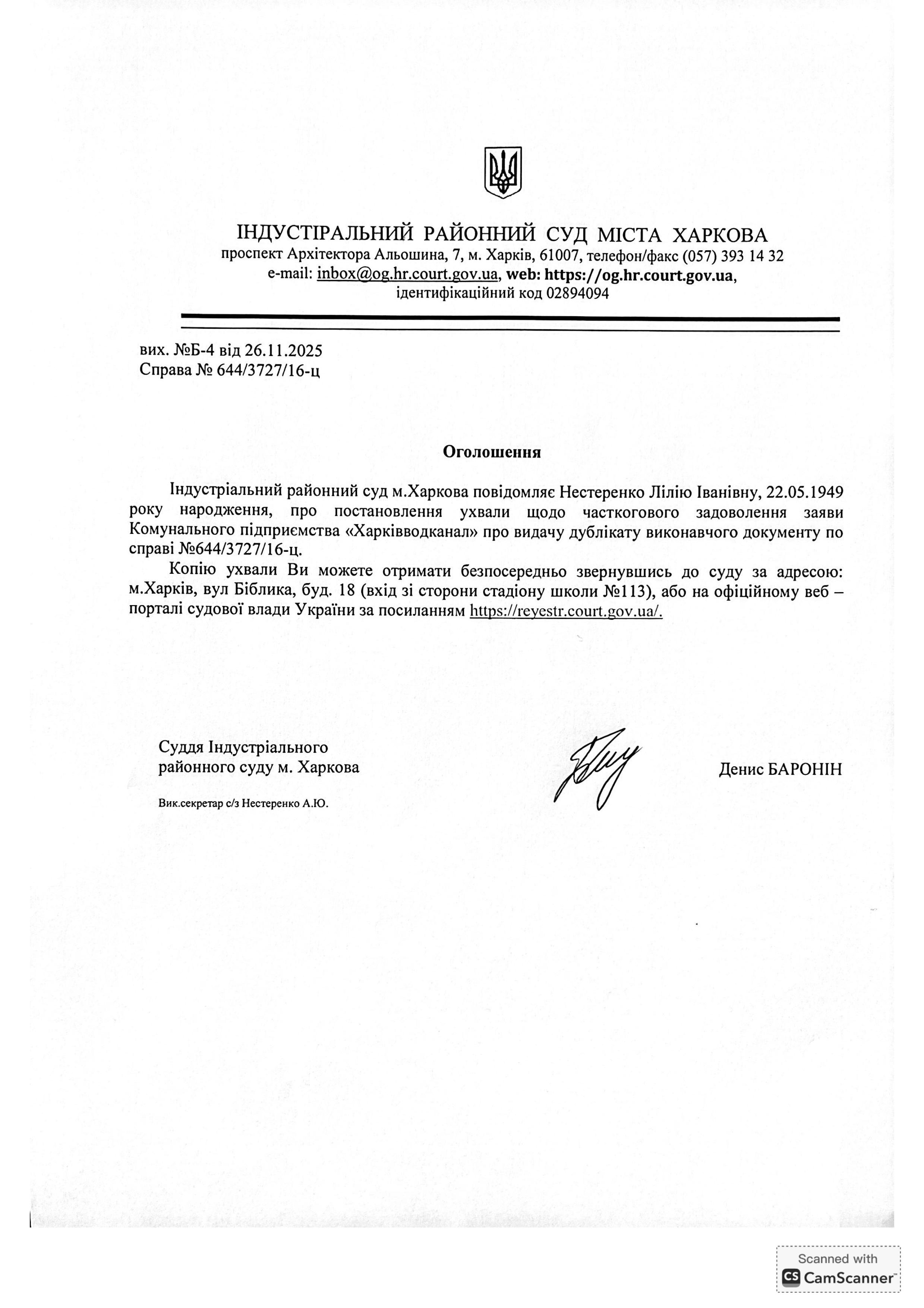 Оголошення про видачу дубліката виконавчого документу