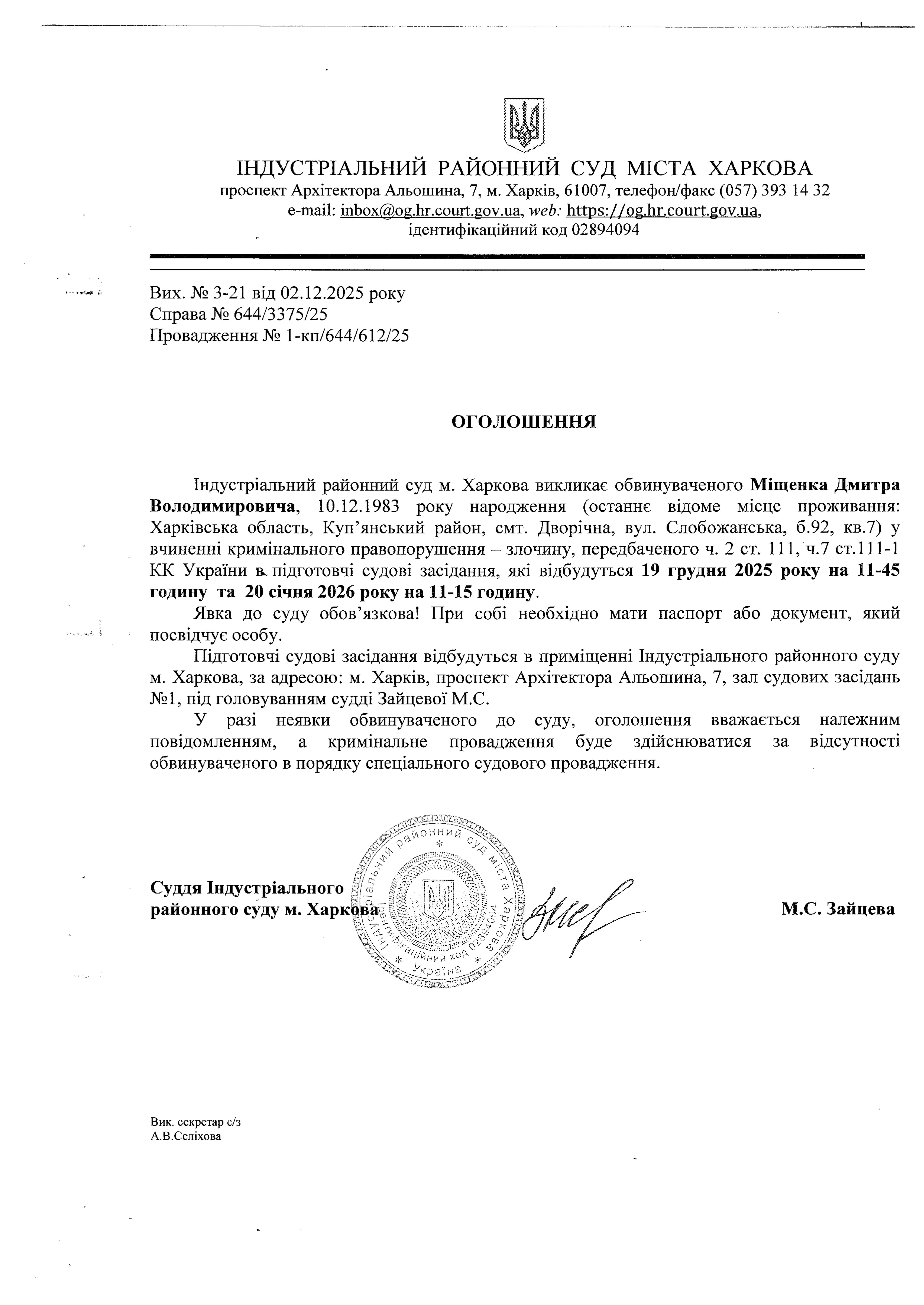 Оголошення про виклик особи в суд та повідомлення про судове рішення
