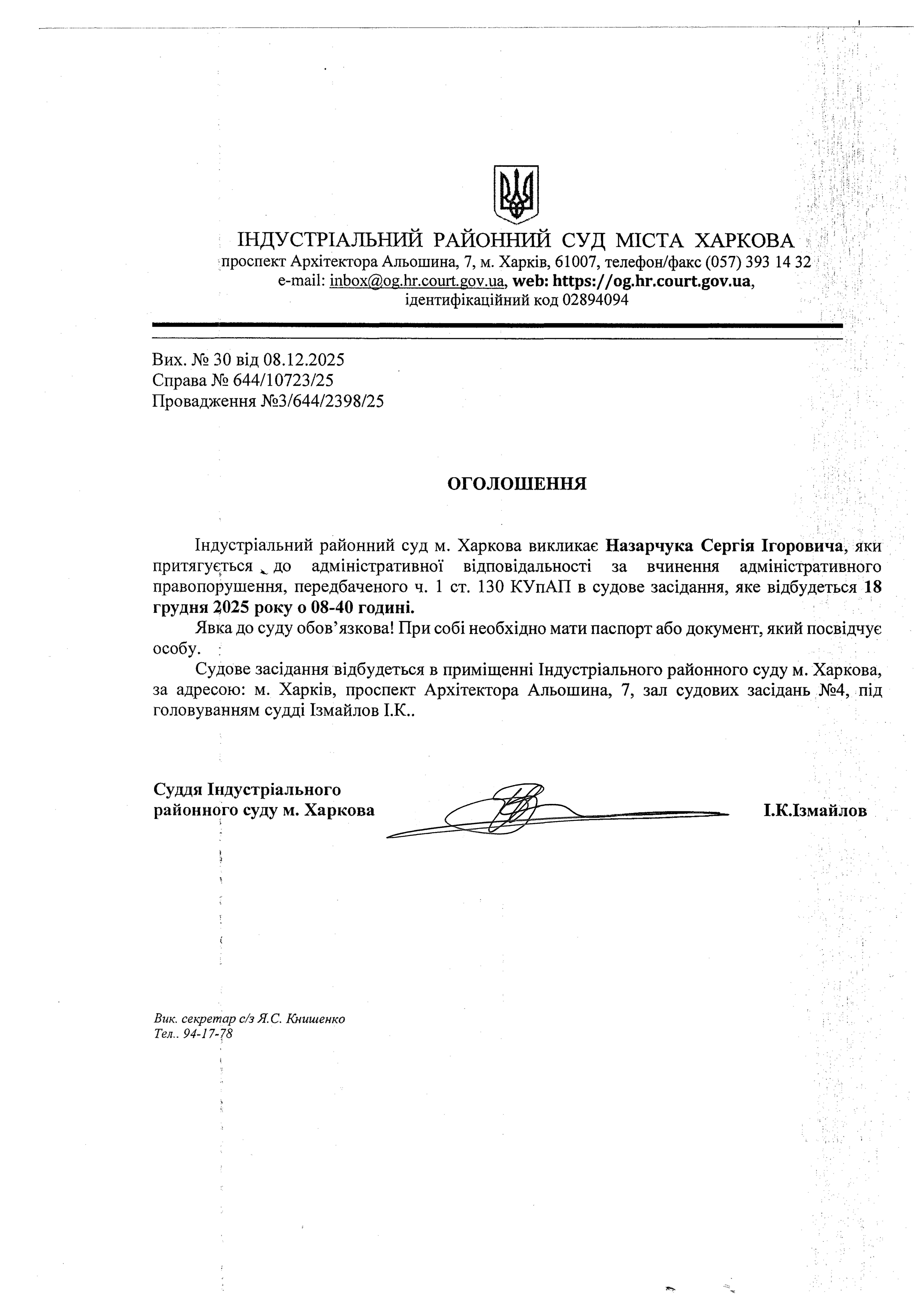 Оголошення про виклик особи в суд та повідомлення про судове рішення