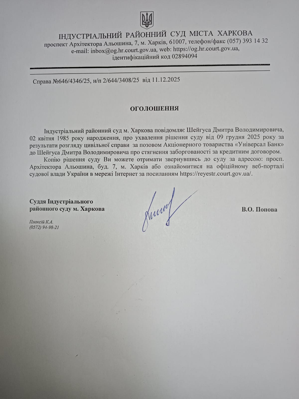 Оголошення про виклик особи в суд та повідомлення про судове рішення