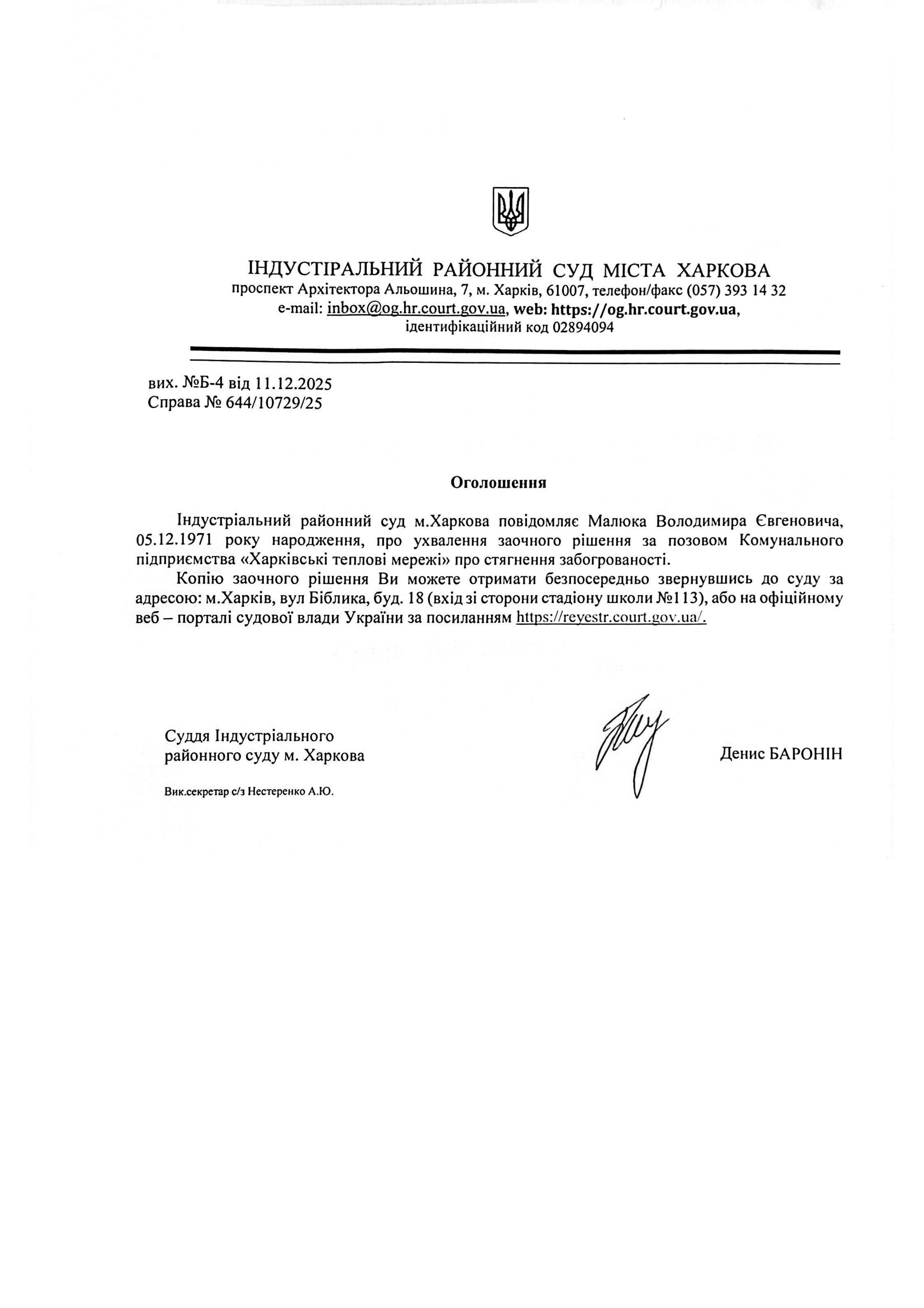 Оголошення про виклик особи в суд та повідомлення про судове рішення