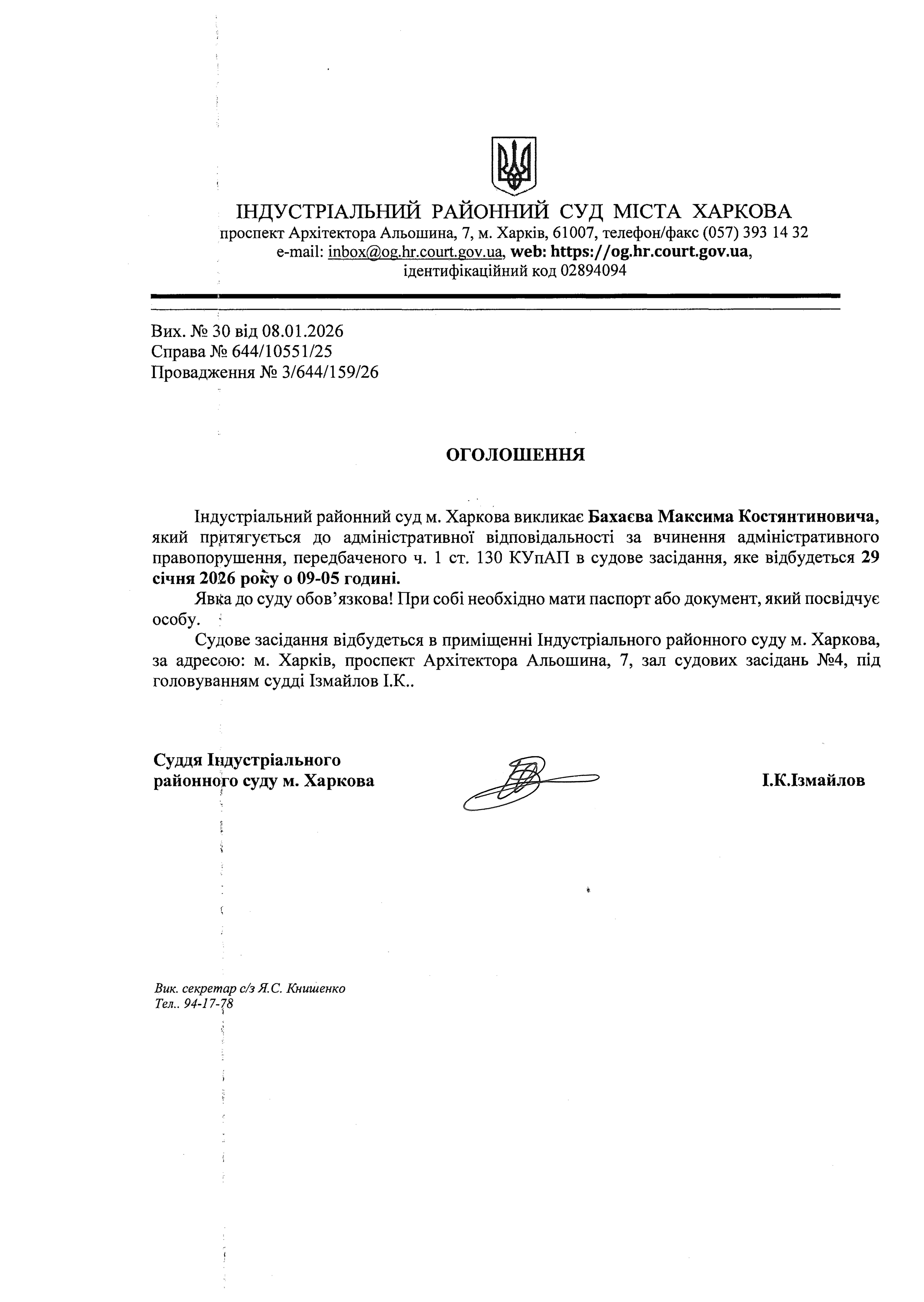 Оголошення про виклик особи в суд та повідомлення про судове рішення