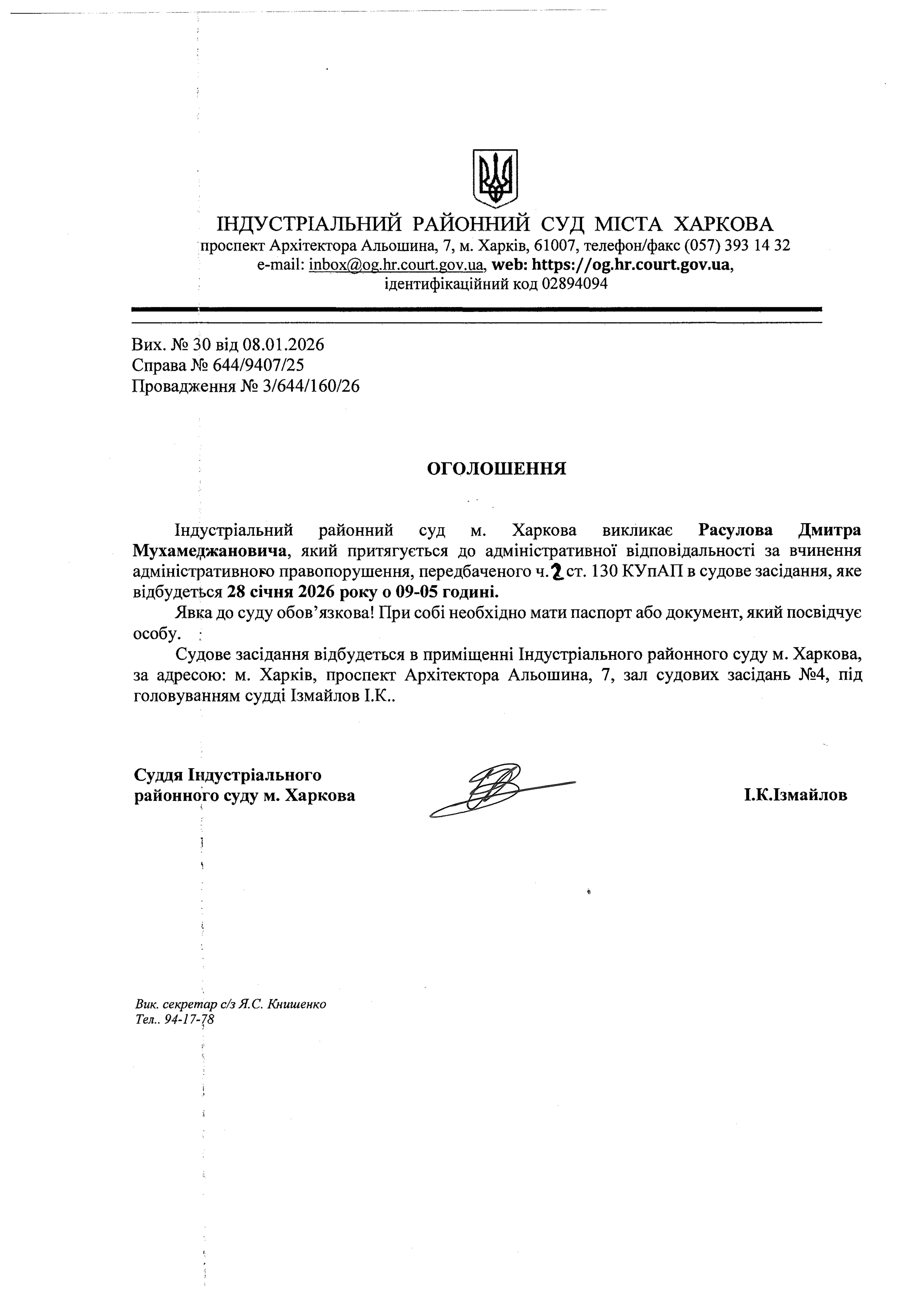 Оголошення про виклик особи в суд та повідомлення про судове рішення