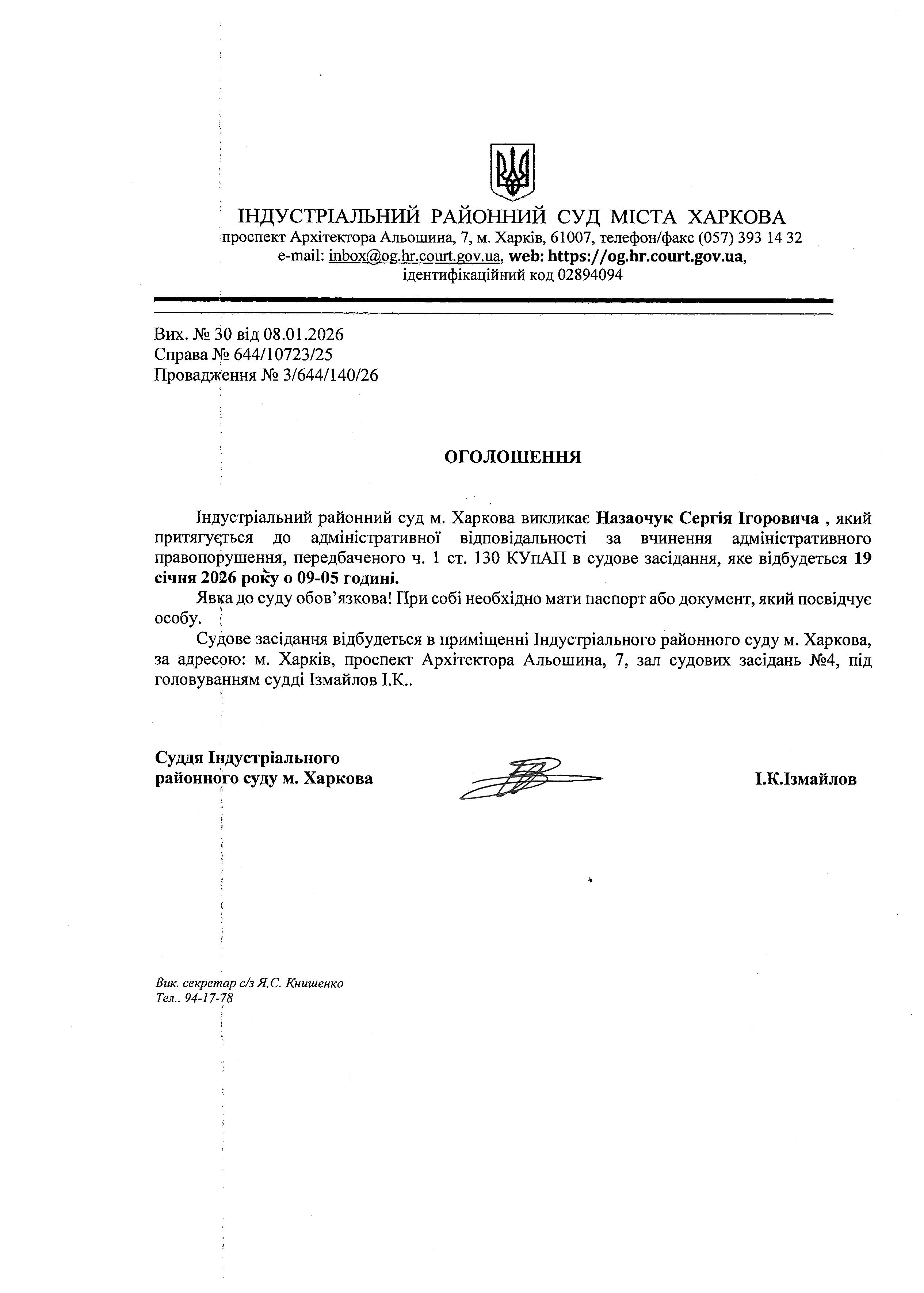 Оголошення про виклик особи в суд та повідомлення про судове рішення