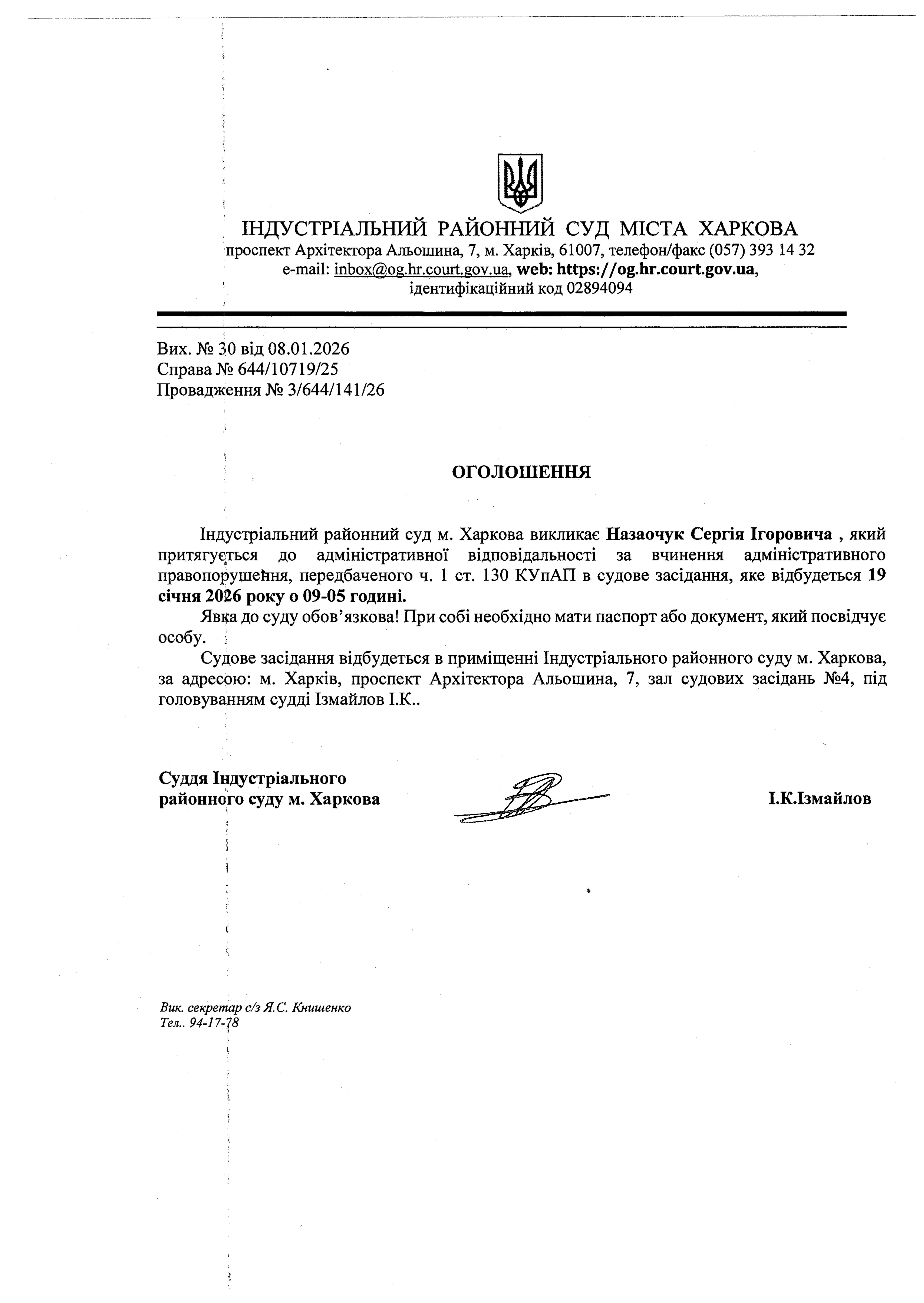 Оголошення про виклик особи в суд та повідомлення про судове рішення