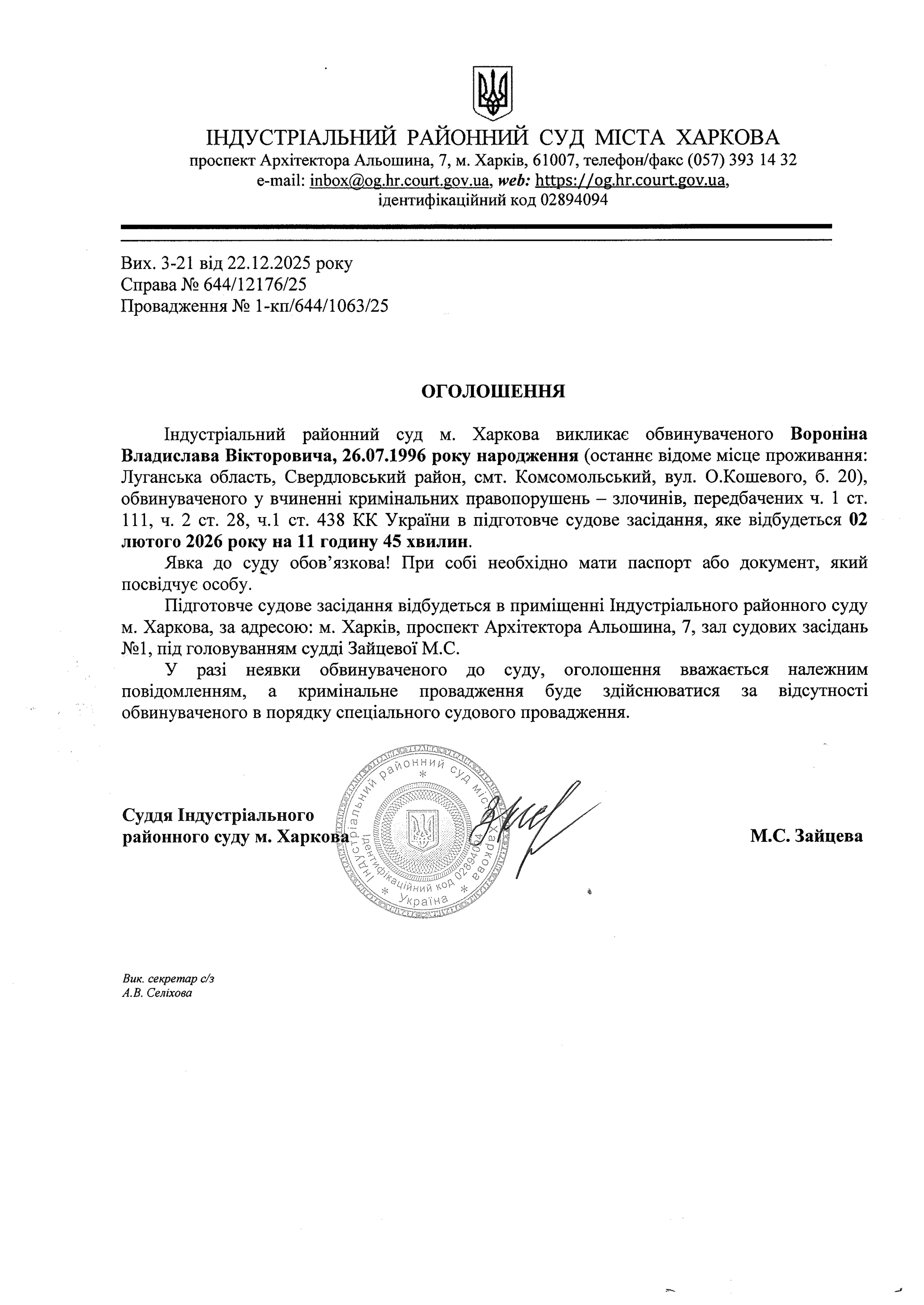 Оголошення про виклик до суду