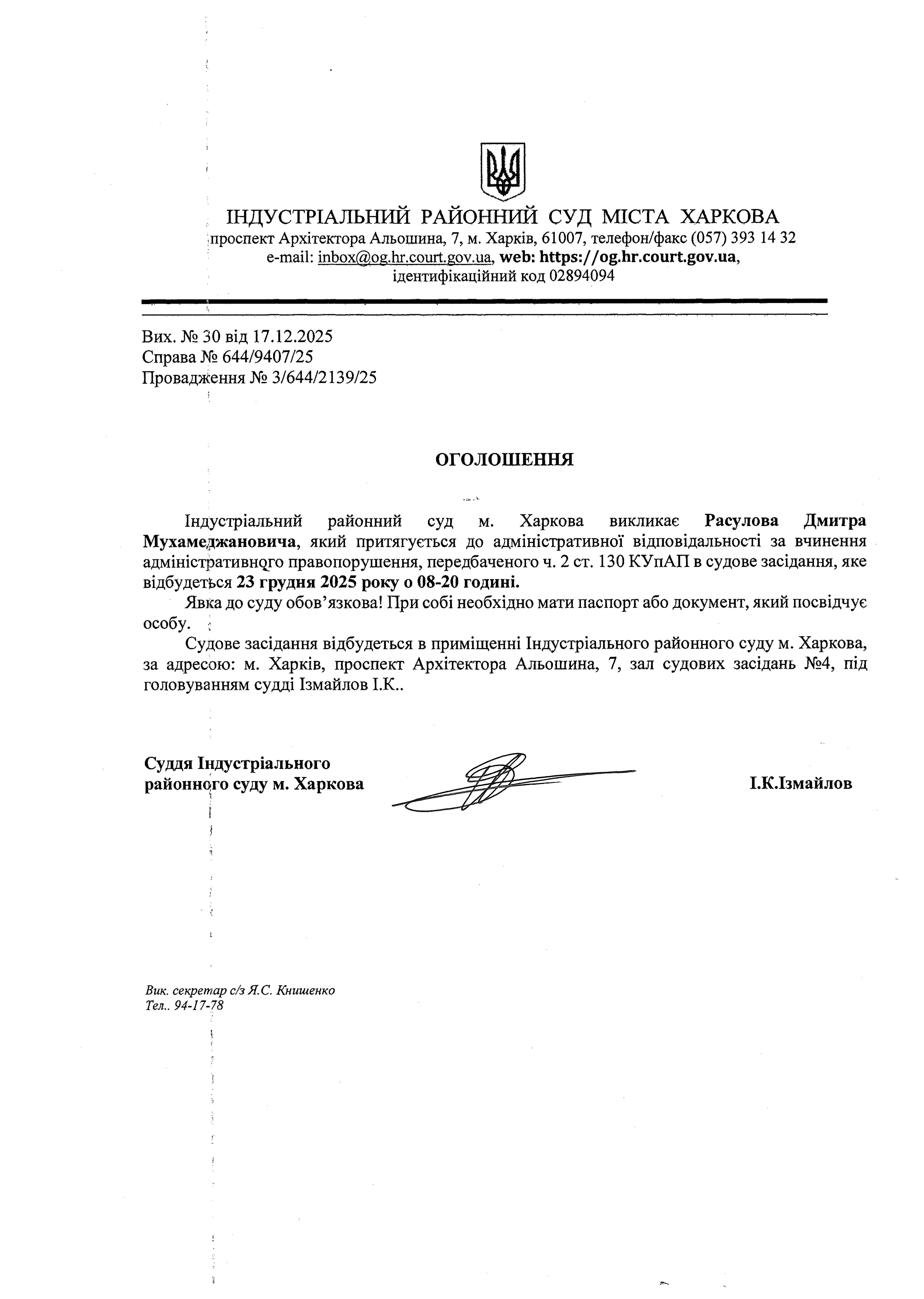 Оголошення про виклик особи в суд та повідомлення про судове рішення