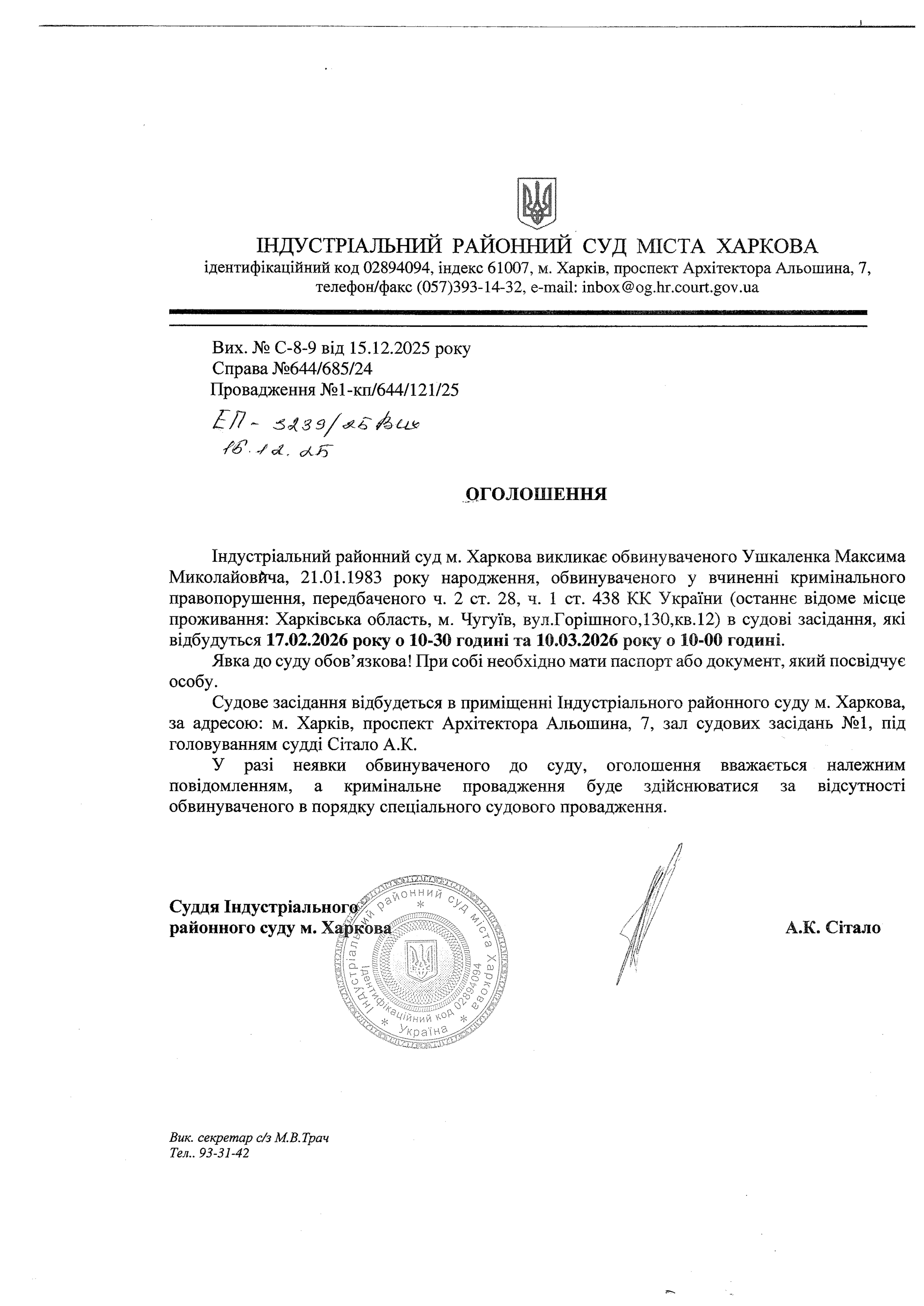 Оголошення про виклик особи в суд та повідомлення про судове рішення