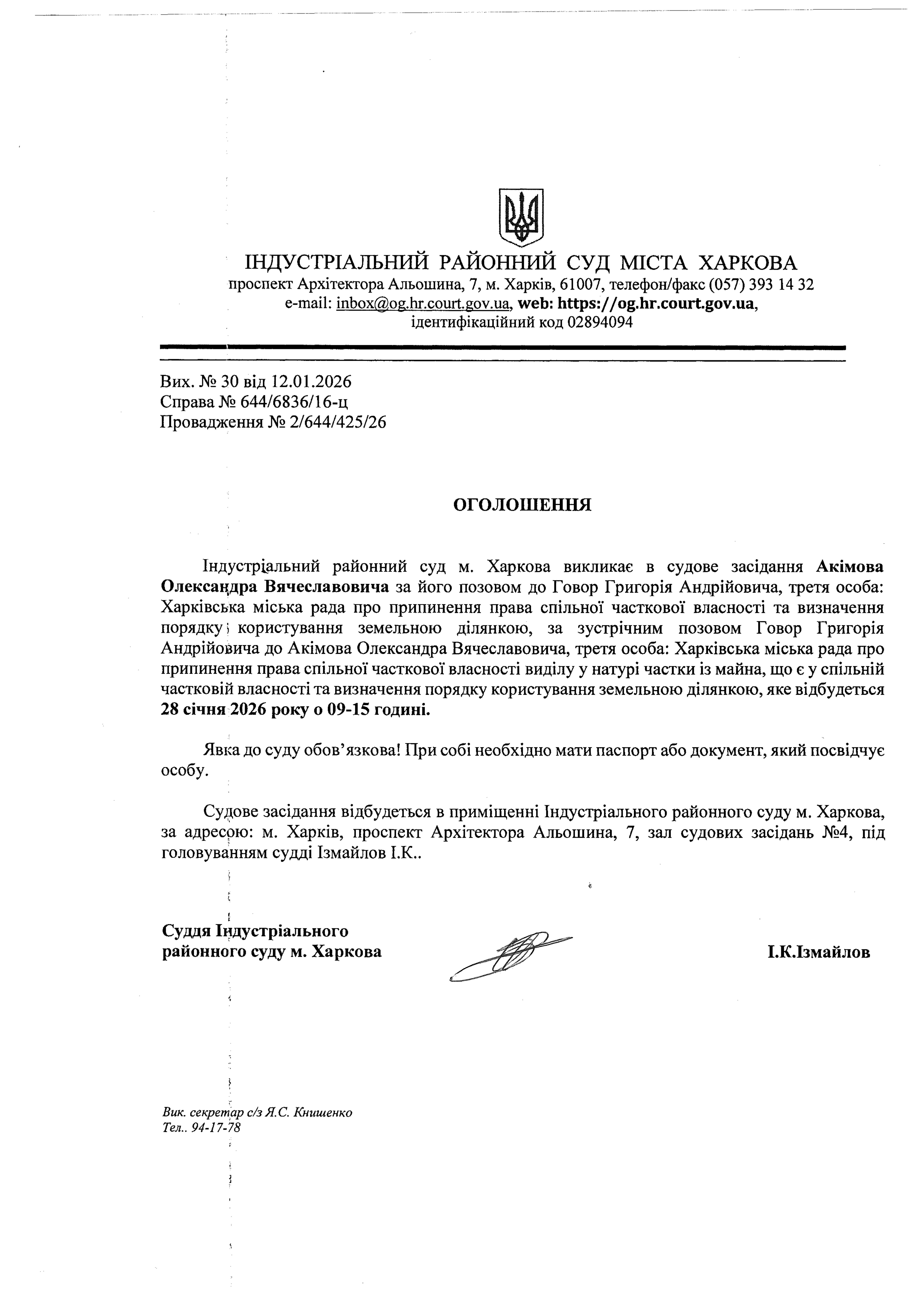 Оголошення про виклик особи в суд та повідомлення про судове рішення