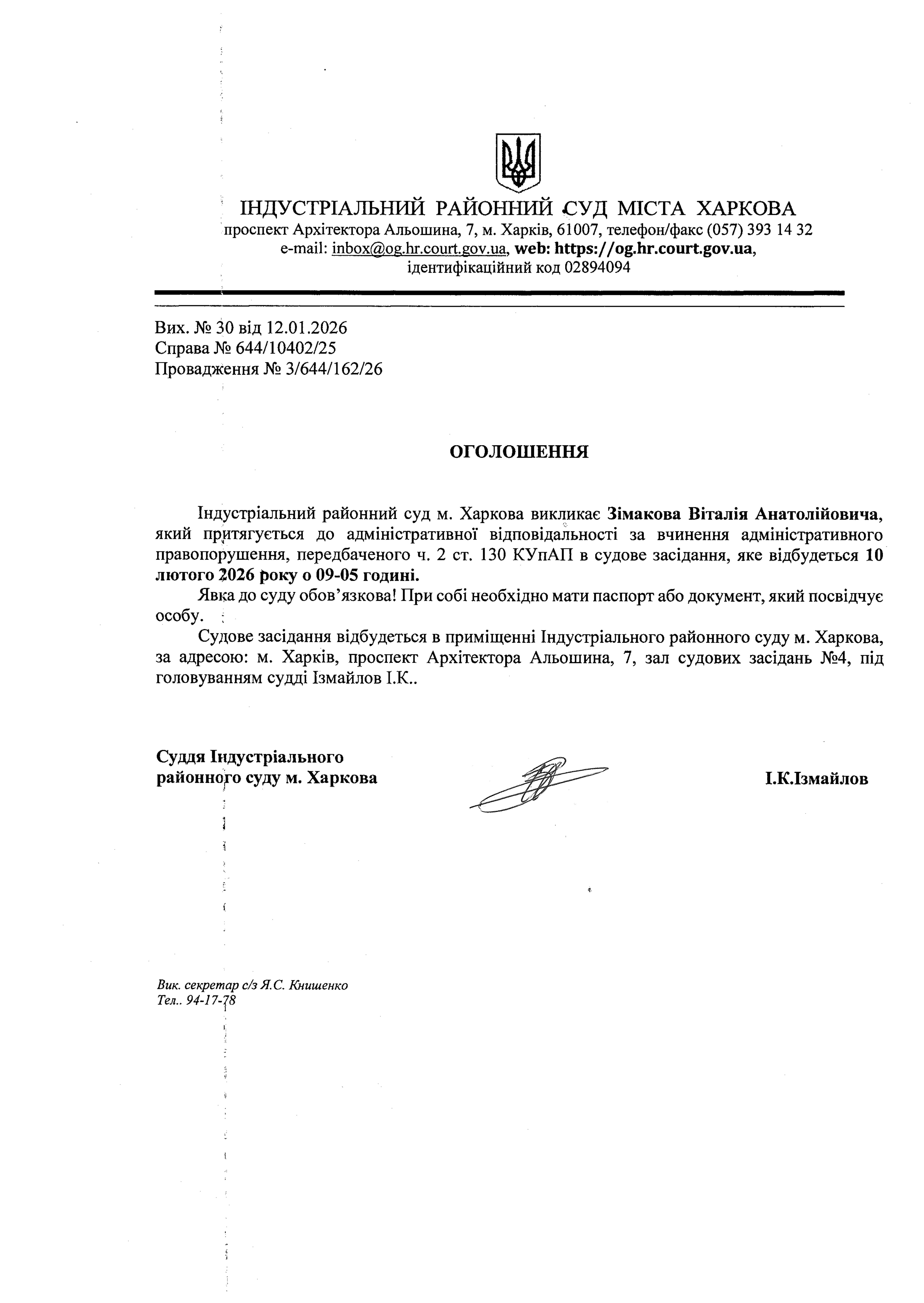 Оголошення про виклик особи в суд та повідомлення про судове рішення