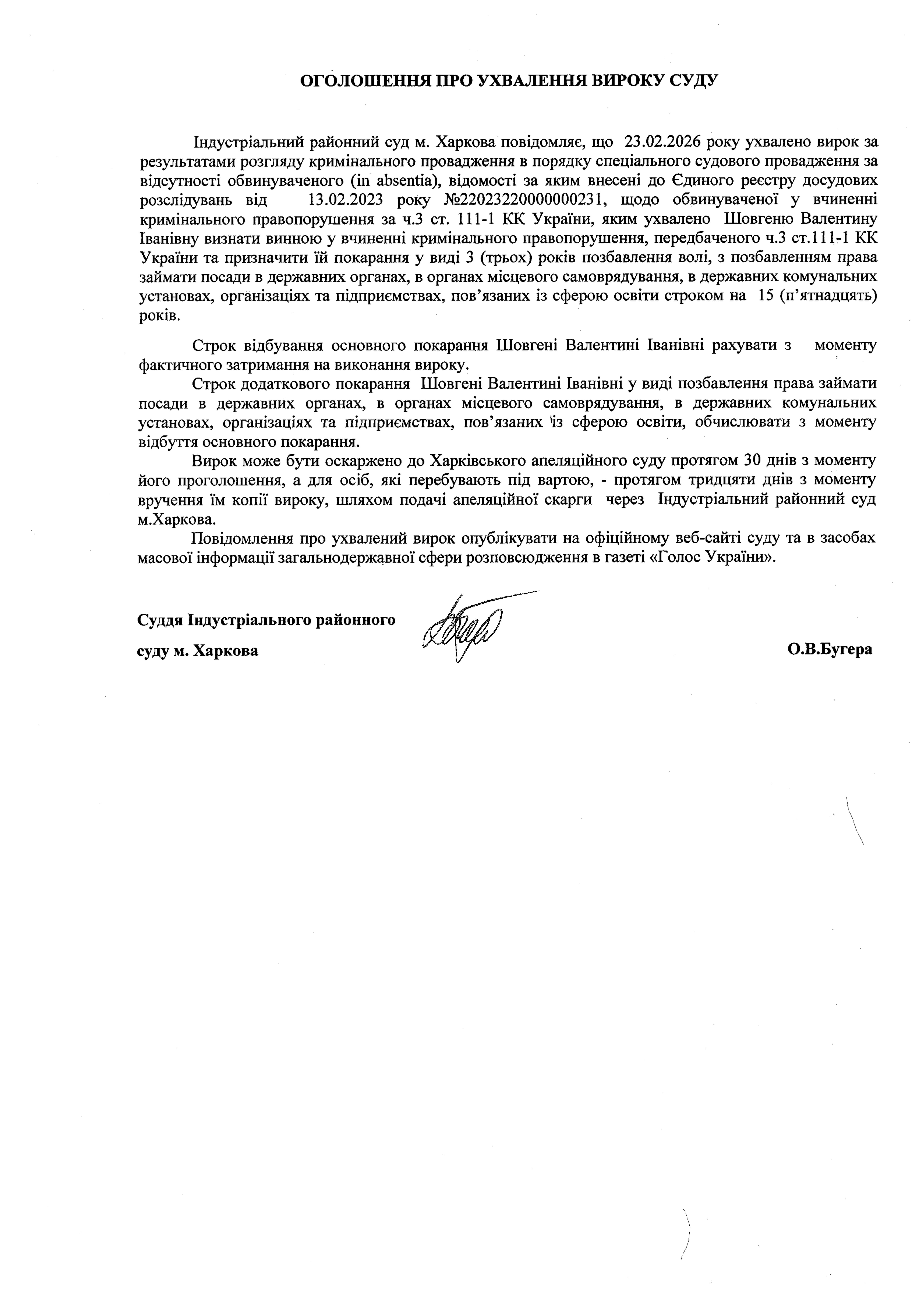 Оголошення про ухвалення вироку