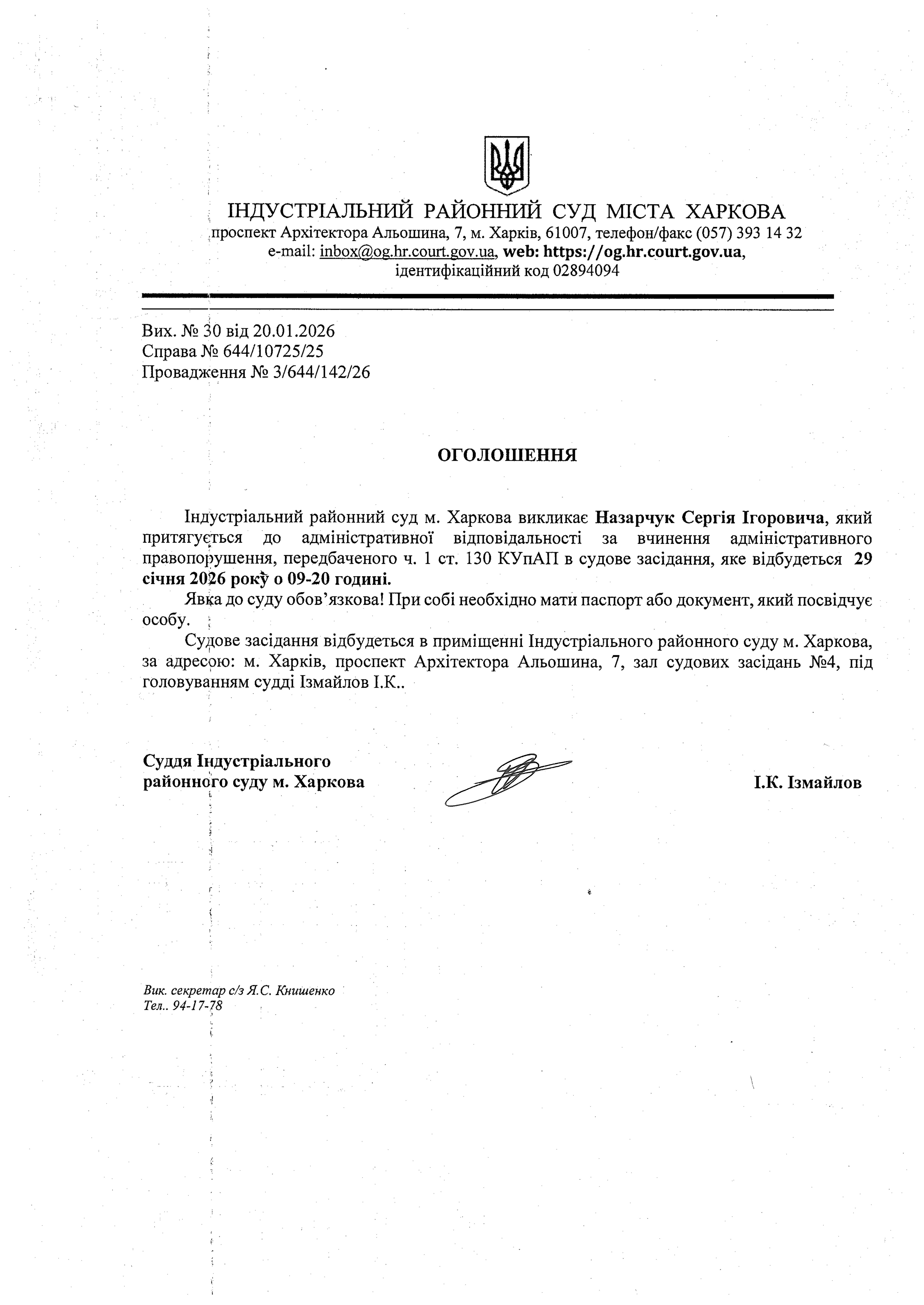 Оголошення про виклик особи в суд та повідомлення про судове рішення