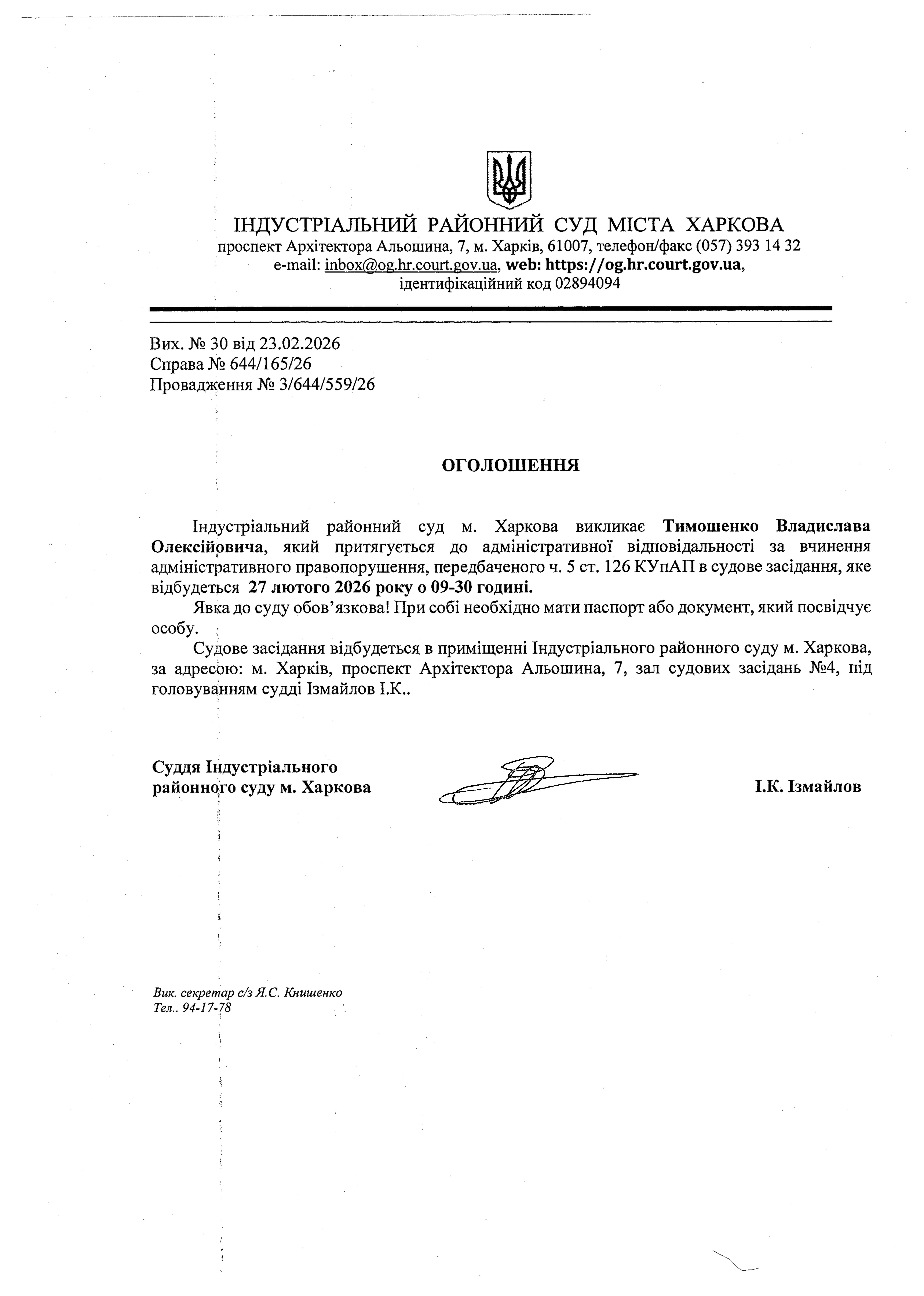 Оголошення про виклик особи в суд та повідомлення про судове рішення