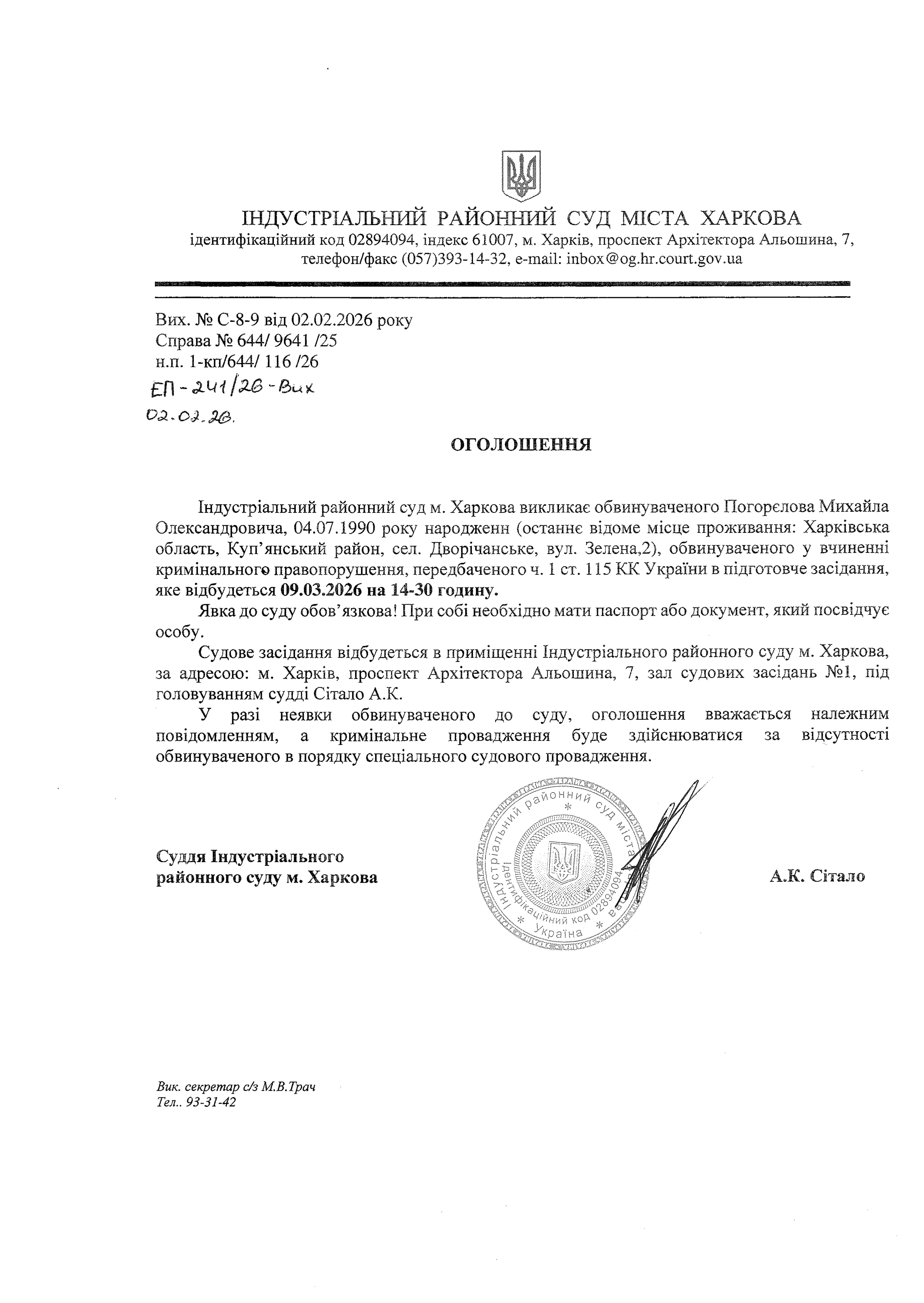 Оголошення про виклик до суду