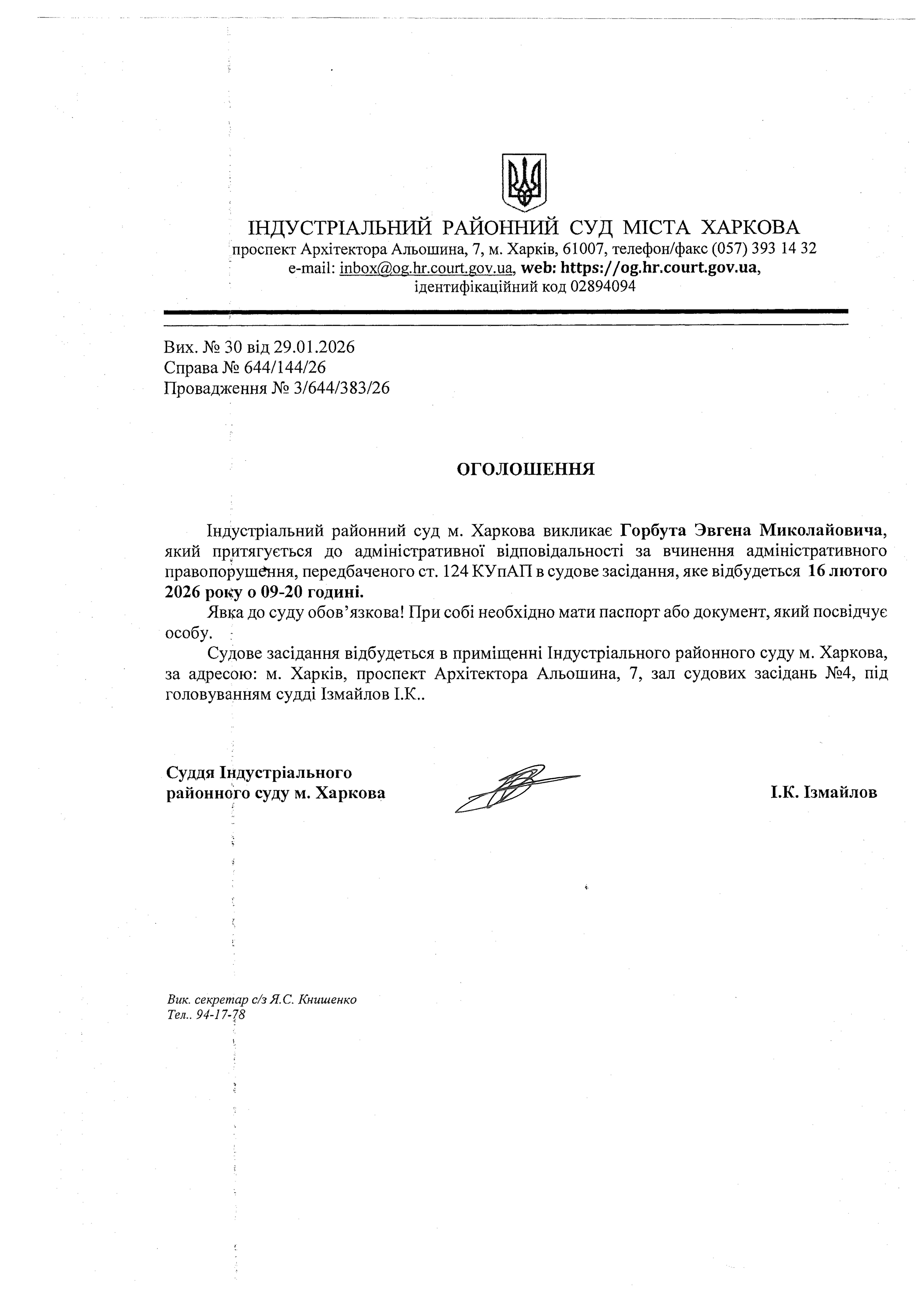 Оголошення про виклик особи в суд та повідомлення про судове рішення