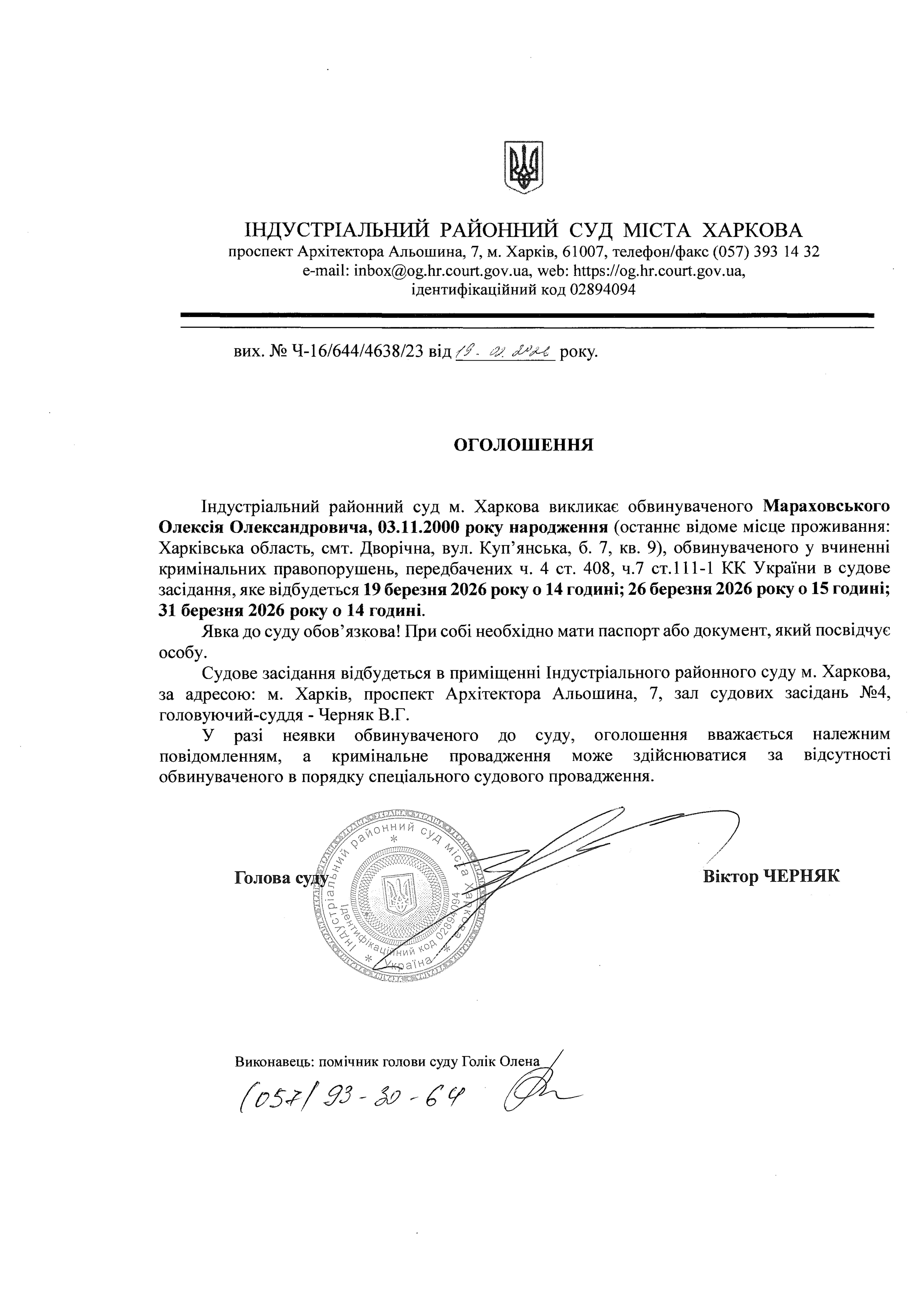 Оголошення про виклик особи в суд та повідомлення про судове рішення