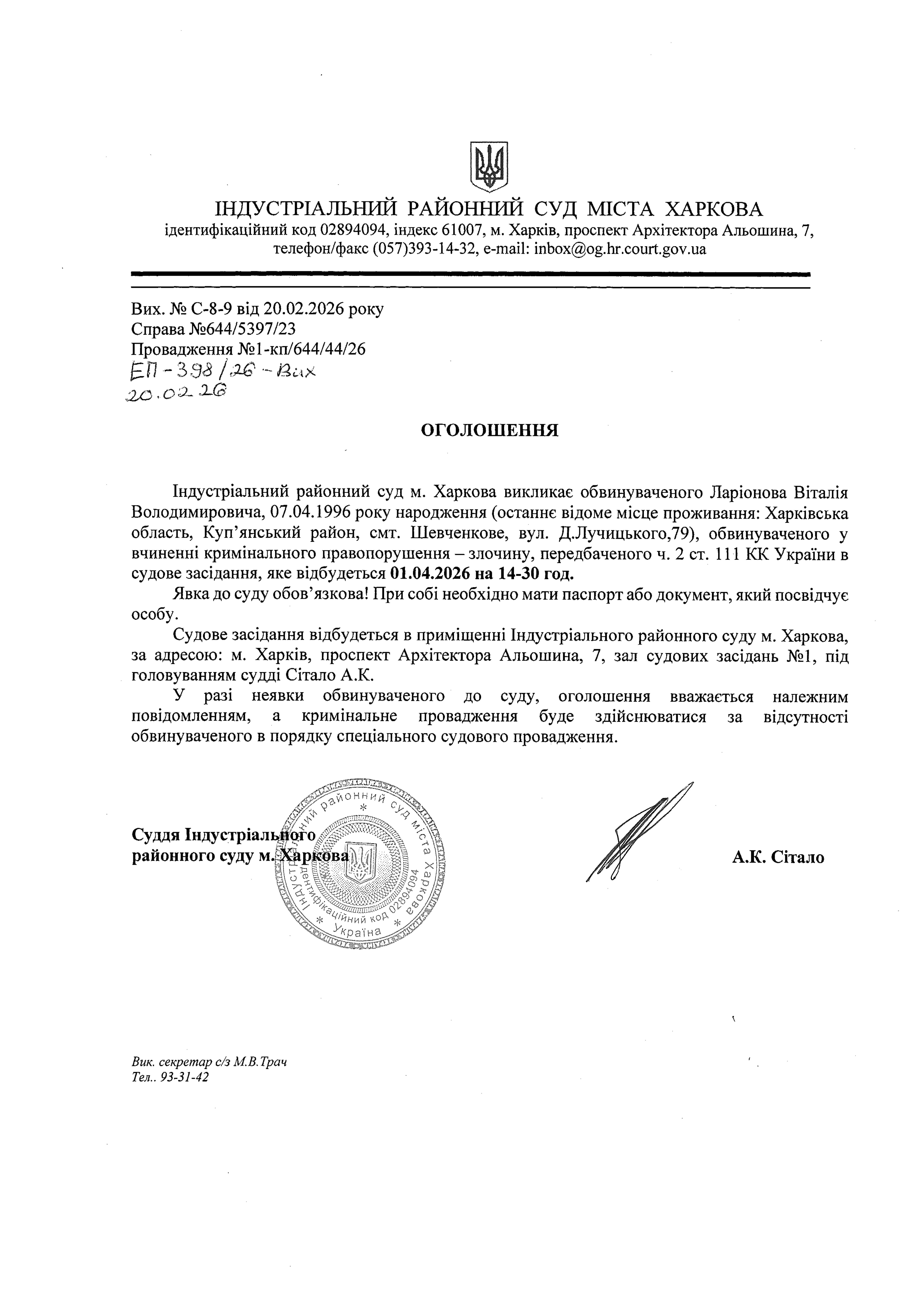 Оголошення про виклик до суду
