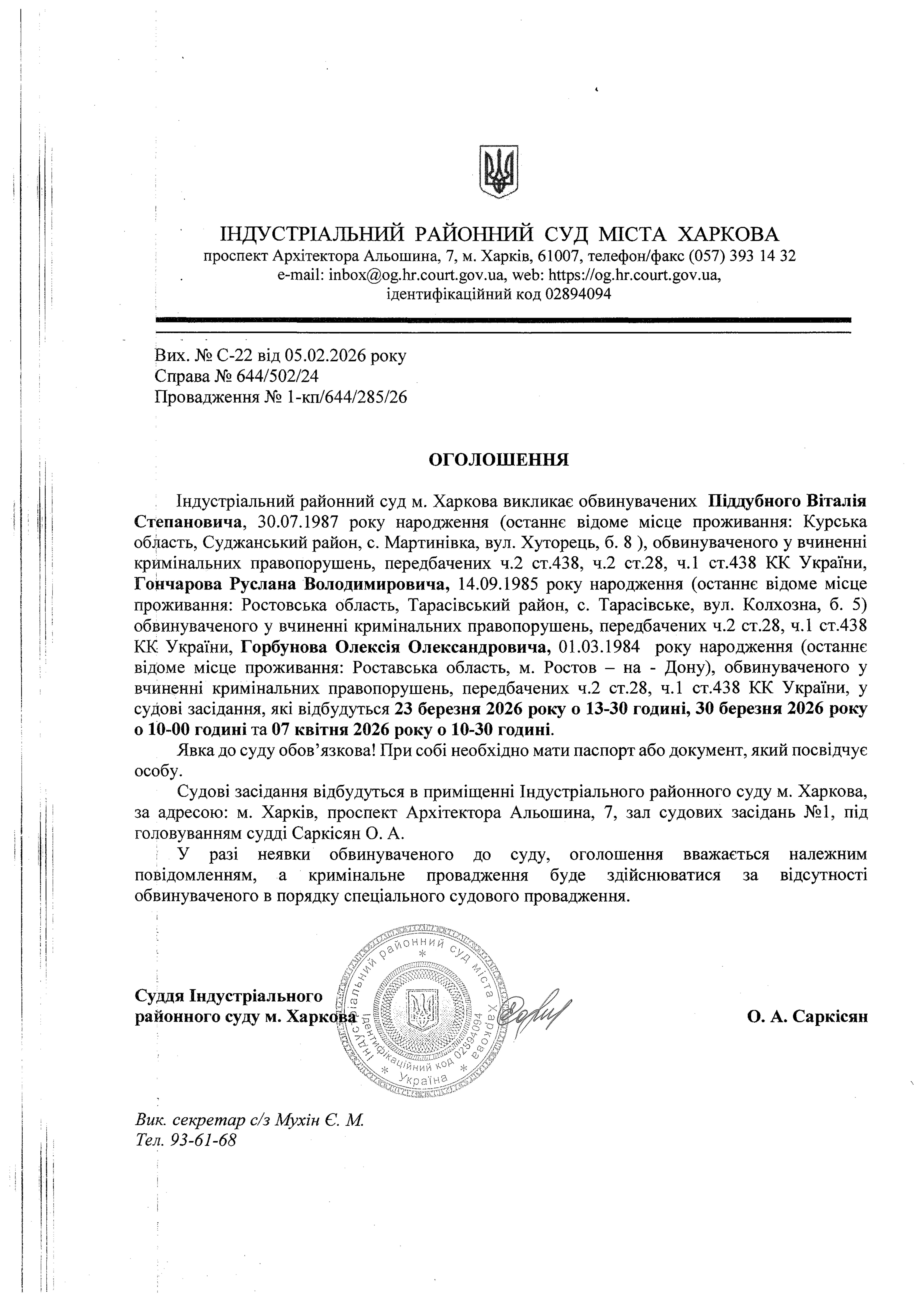 Оголошення про виклик особи в суд та повідомлення про судове рішення