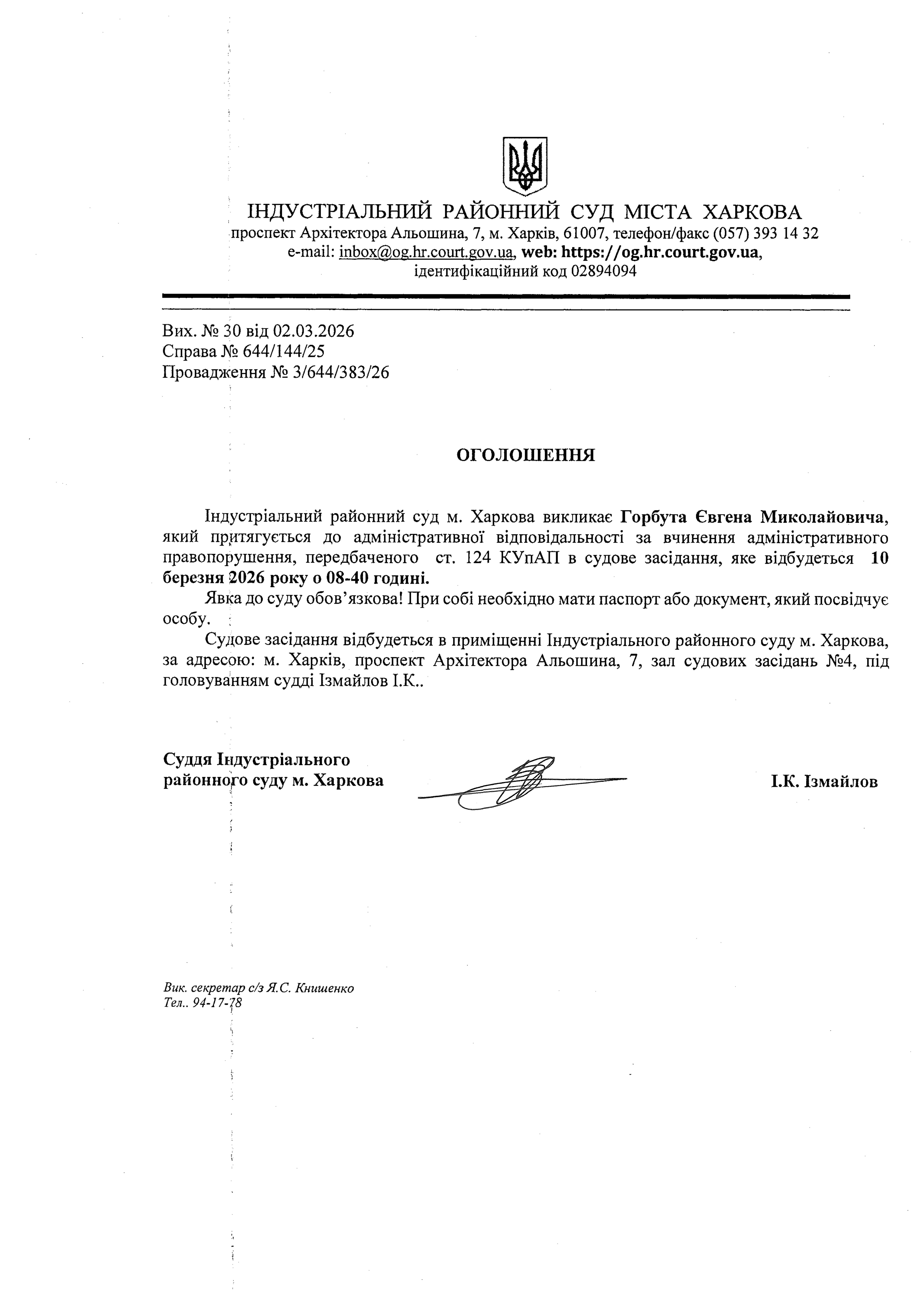 Оголошення про виклик особи в суд та повідомлення про судове рішення