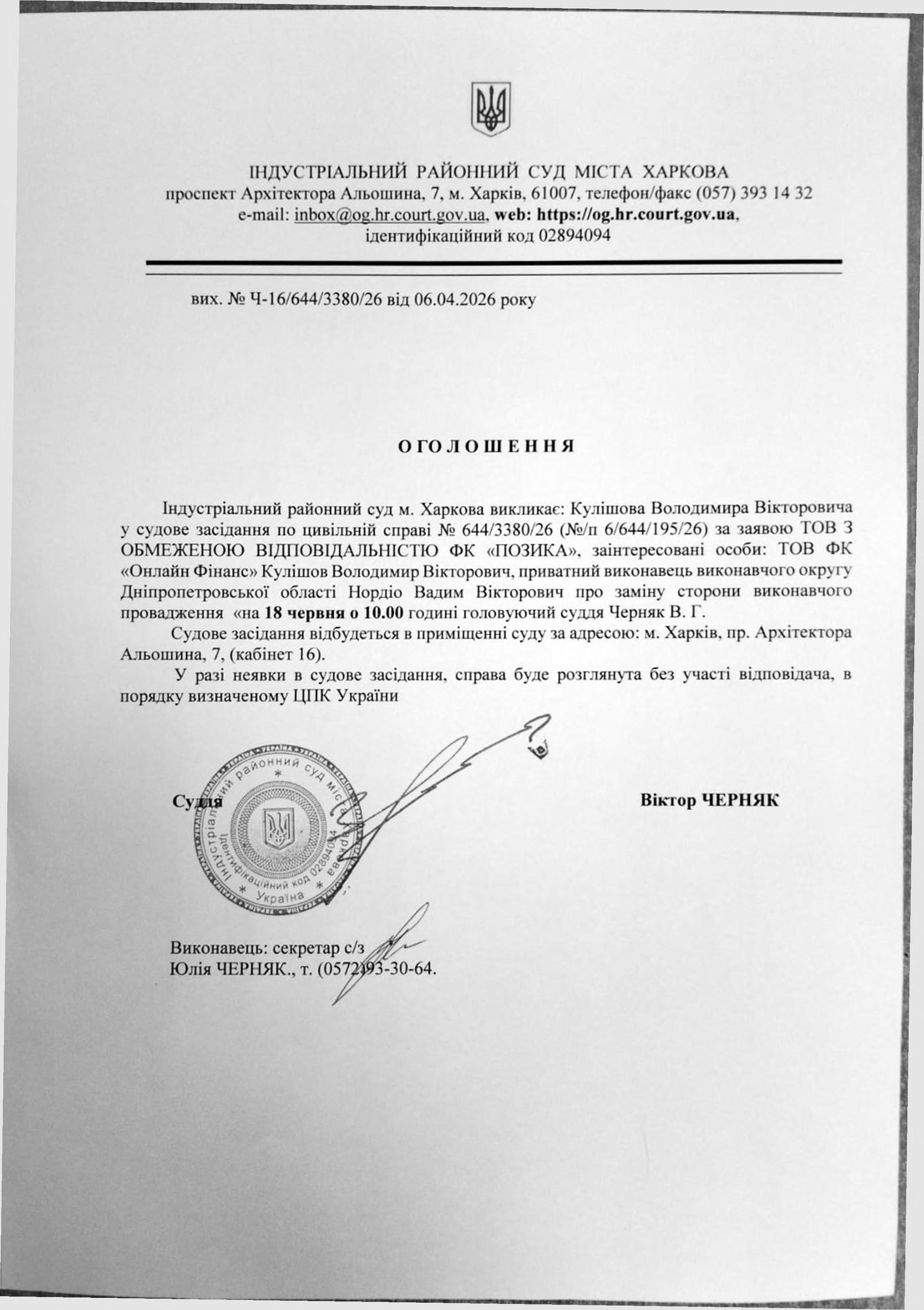 Оголошення про виклик особи в суд та повідомлення про судове рішення