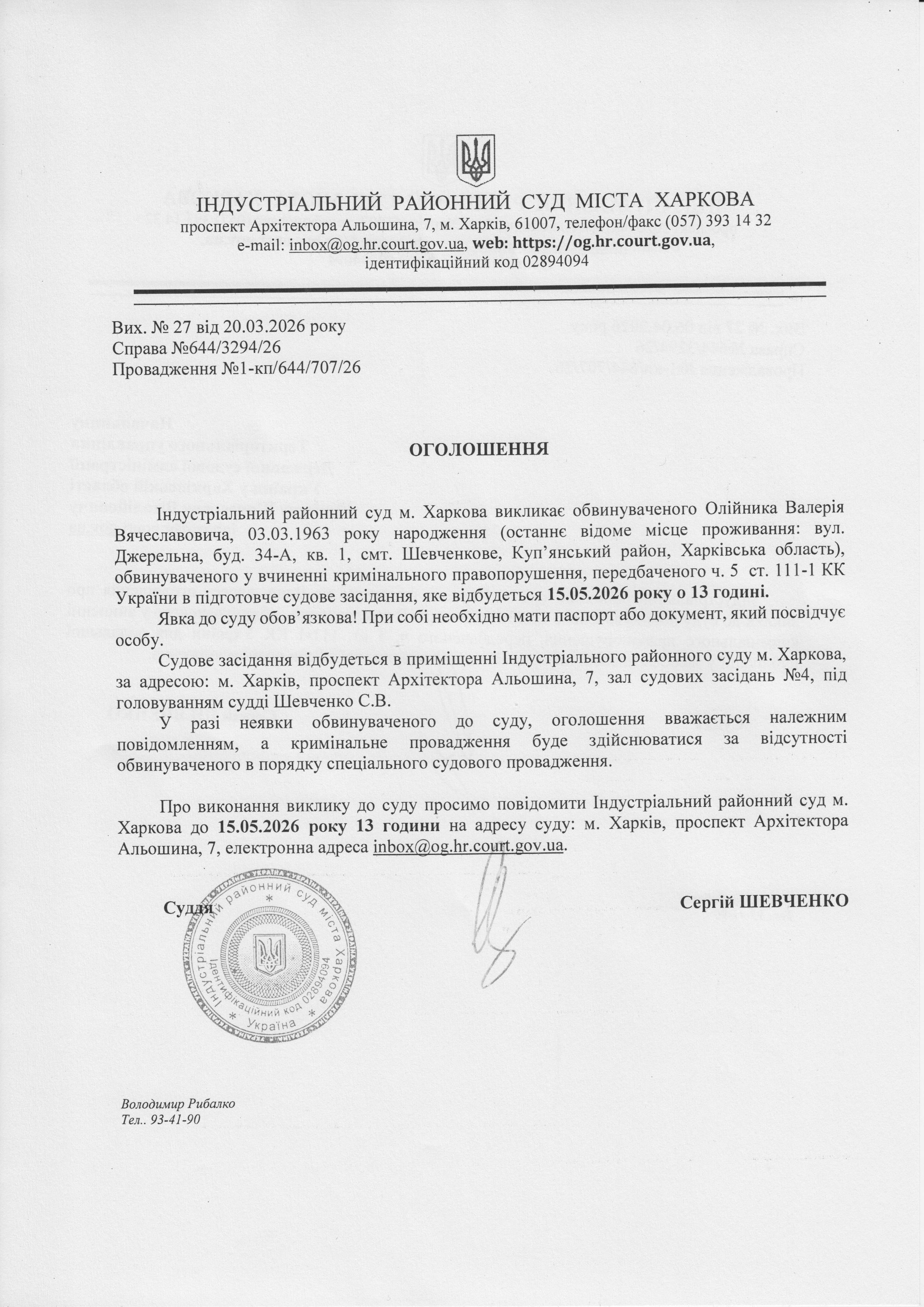 Оголошення про виклик особи в суд та повідомлення про судове рішення
